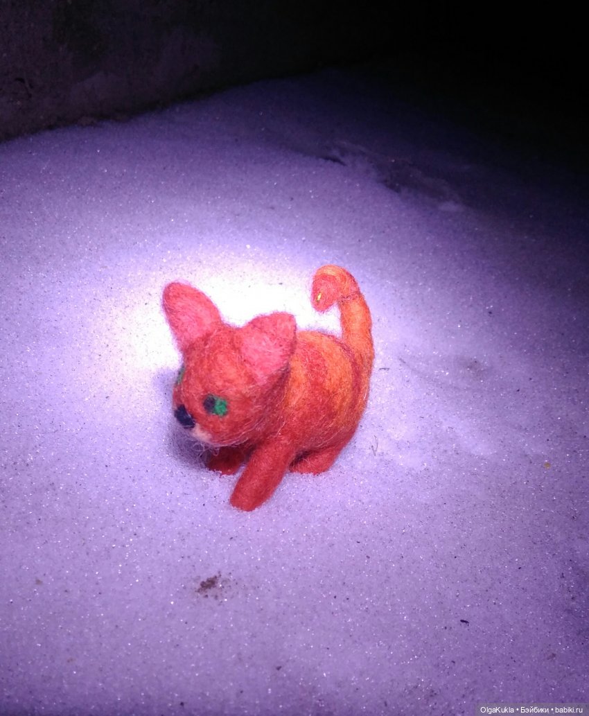 С котиком вышла смешная история. Съёмки уже начались, а я совсем забыла про Безу. (Как можно было забыть про одно из главных персонажей ума не приложу) поэтому котик родился внезапно из кусочка шерсти для валяния, муж сказал, что он не очень похож, но я ответила, что это импрессионизм — тут важен не сам кот, а впечатление от кота)))