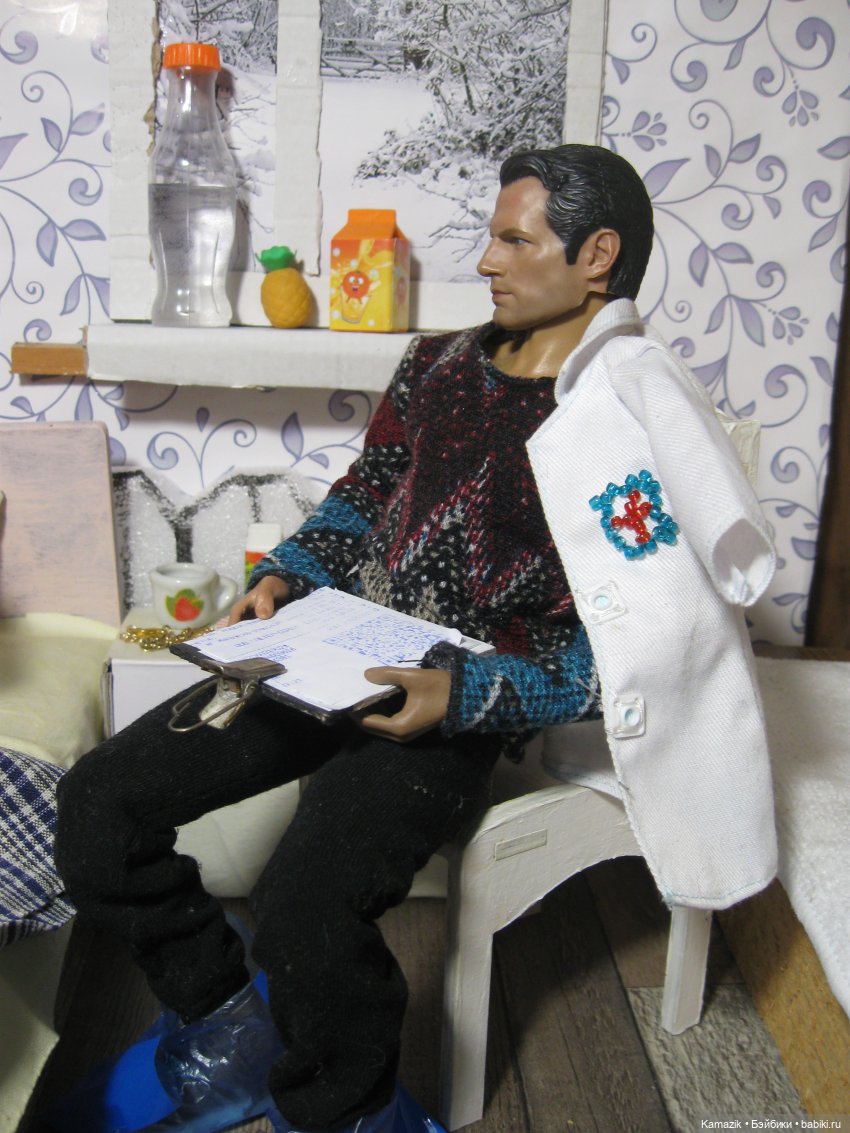 Люблю твою детализацию! Я бахилы делала прям из бахил с той самой резиночкой от них отрезала. Но твои хороши и узнаваемы, а это главное!) еще понравилась папочка с прищепкой у следователя) и какие конструкции с лампами у тебя! Очень интересно было)