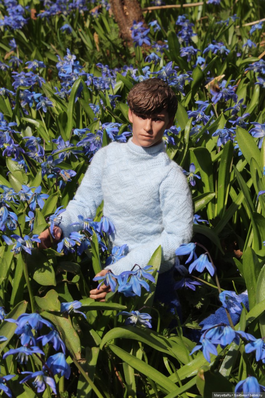 Лукас в небесно-голубом свитере в пролесках прекрасен.