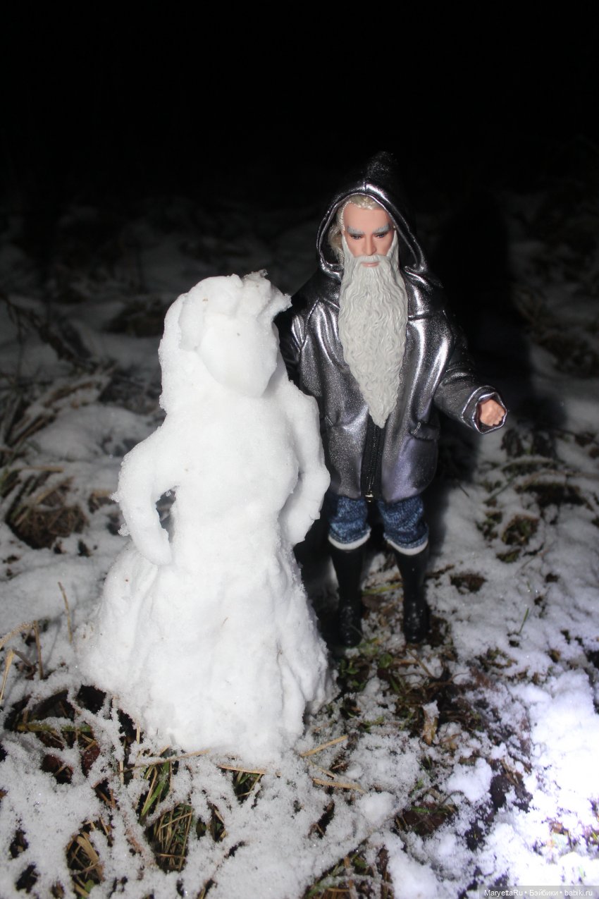 Думаю, превратить снежную бабу в пластиковую шарнирную бабу: есть у меня такие бледные, словно из снега сделанные. Только даже не догадываюсь, зачем Лукасу оживлять это… да-да, «создание».
