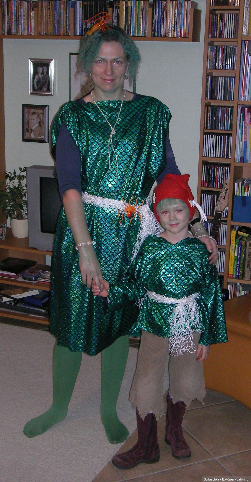Дети слушали очень по-разному: Миша — тихо и серьезно, слегка нахмурив бровки, Владо настроился на его сознание и уловил образы, которые там возникали: маленький мальчик с зелеными волосами плывет на огромной рыбине, больше всего похожей на селедку, едет с горки, очень похожей на ту, с которой Миша катался в аквапарке, слушает, как папа Водяной играет на каком-то странном инструменте. Очевидно, так Миша представлял арфу.