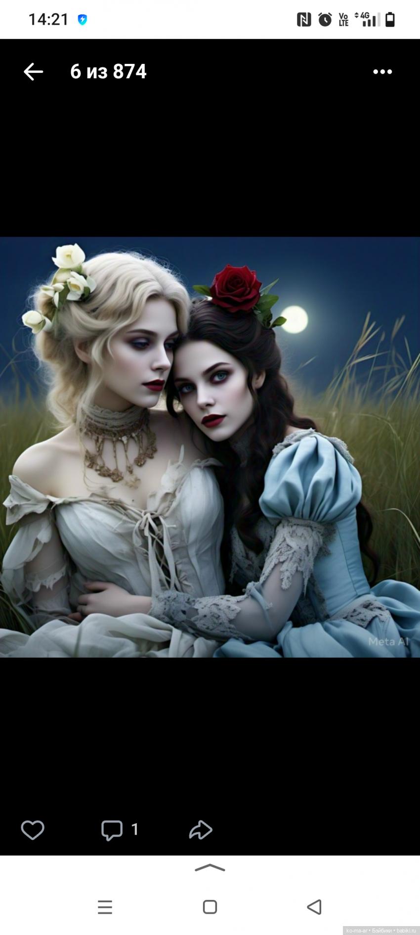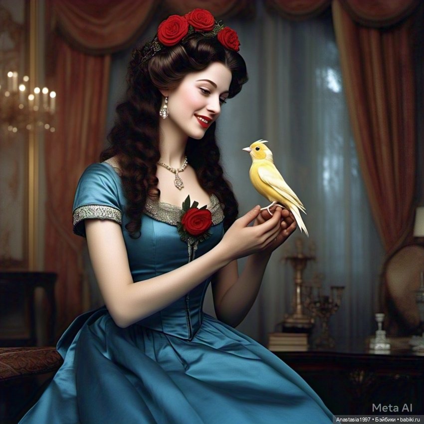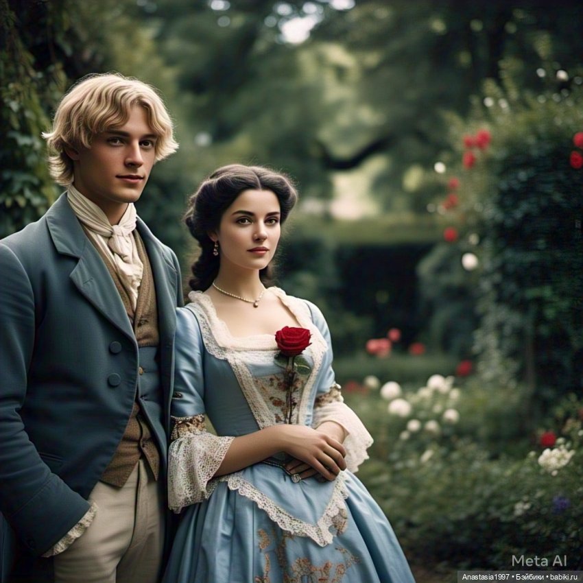 Главное было — узнаваемость, чтобы те, кто читал роман, сразу узнали персонажей, а те, кто не читал, могли легко представить себе образ. Единственное, как изобразить гребень я не смогла объяснить нейросети. Она ещё розы почему-то делала голубого цвета))