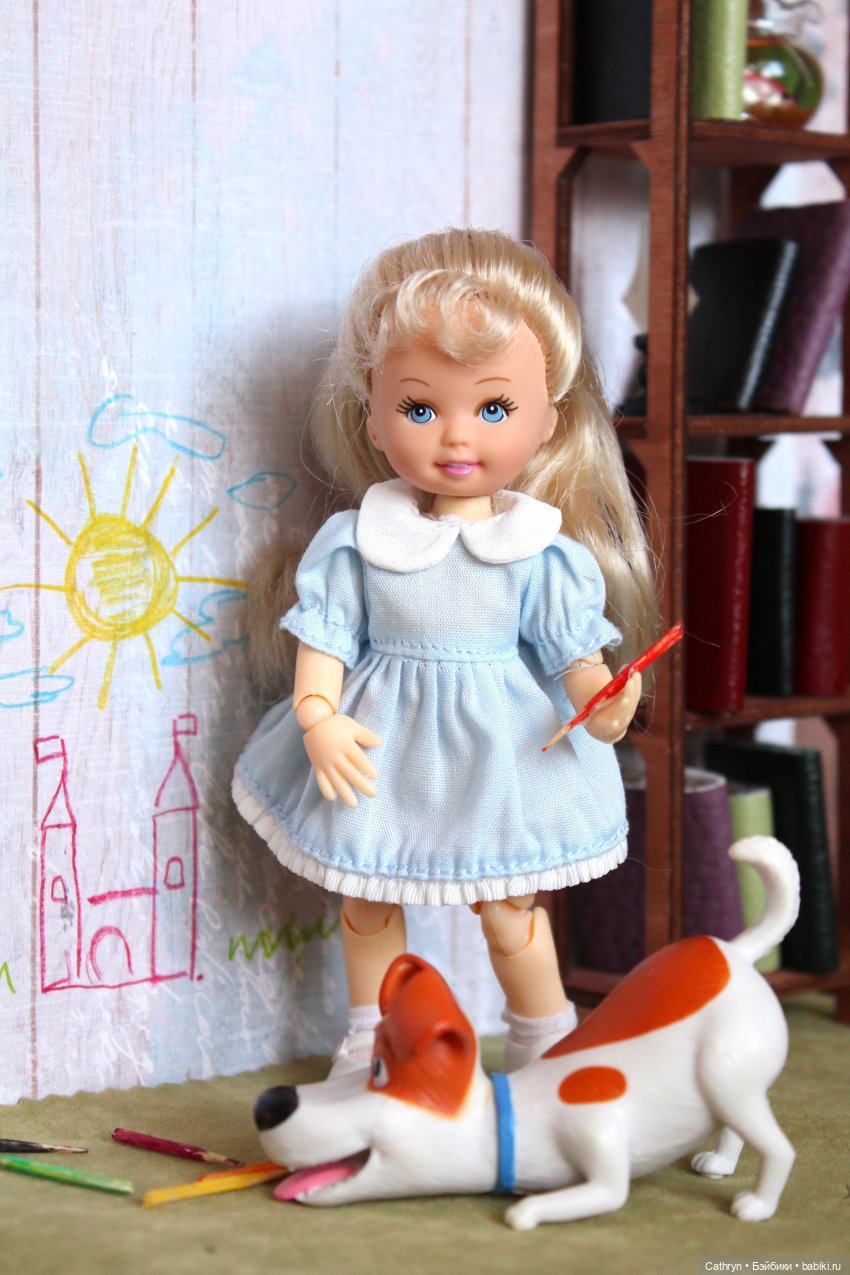 Полинку я удачно выловила на Авито. Новенькую, в коробочке и по смешной цене. Мне так она понравилась, что потом я ещё и темноволосую себе прикупила. Про плохое качество волос у них слышала. Поэтому стараюсь лишний раз их не расчесывать. У светленькой Полинки волосы вроде пока ничего, не мочалятся. А тёмненькой я сразу заплела их в косички.