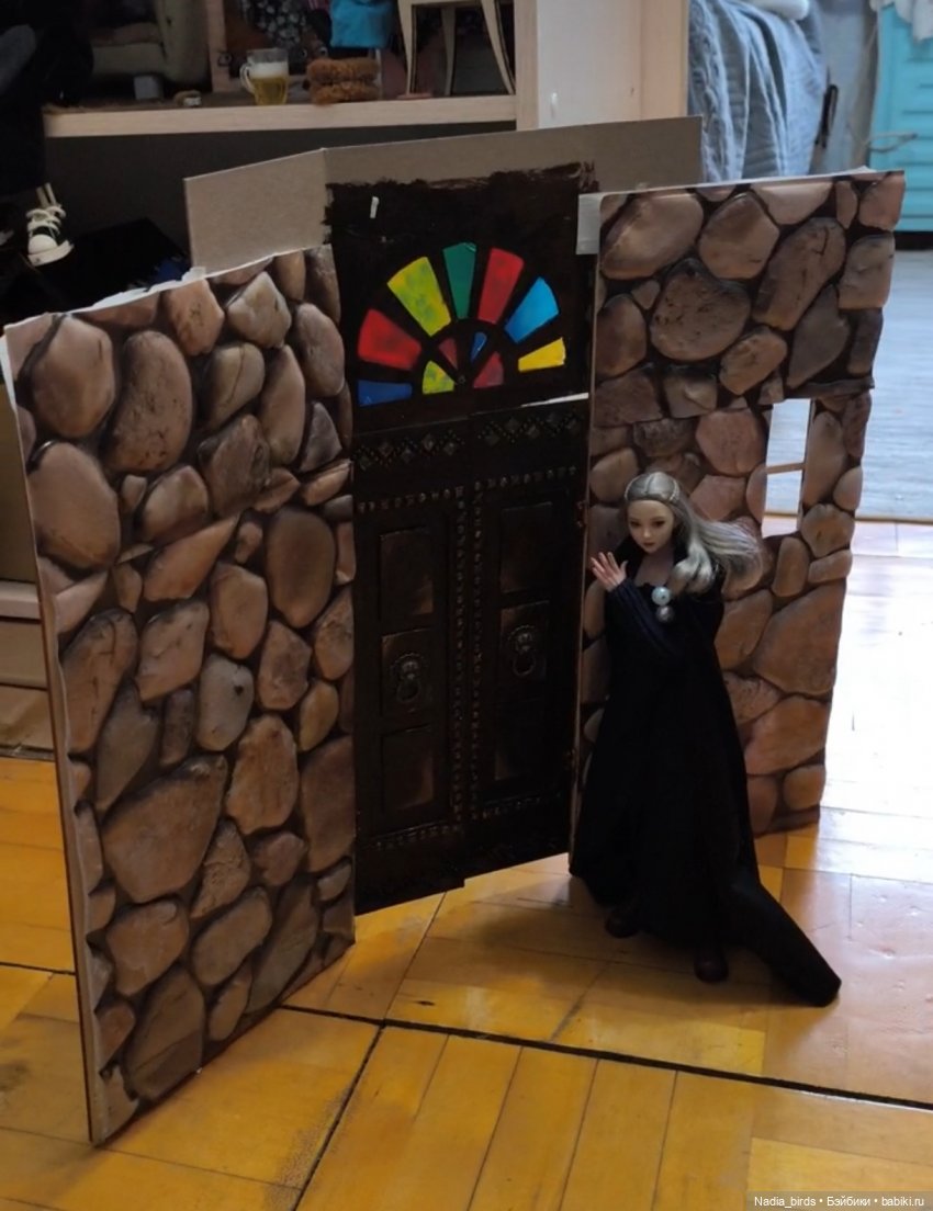 Получилось интересно, но неудобно, все же нужно делать одностворчатые двери, тут все просто ходуном ходит, плюс створки неровно закрываются, потому что нет дверной коробки. В общем, я многое поняла, как не надо делать, на днях еще буду пробовать делать двери, идея в том, чтобы сделать их в коробке, как настоящие, и переносить, то есть при желании встроить в любую стену) если не забуду, пофоткаю и процесс🙂