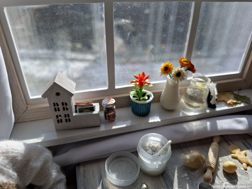На подоконник, где в обычные дни ютился горшок с изрядно пожёванным цветком, были переставлены вещи со стола: чайный домик, салфетница, кувшин с водой, ваза со свежими герберами…