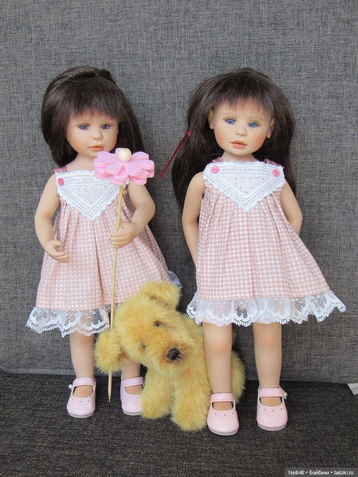 Девочки красивые, 33 и 29 см. Младшенькой (блондинка) я поменяла парик, родной как-то не сидел на головушке.