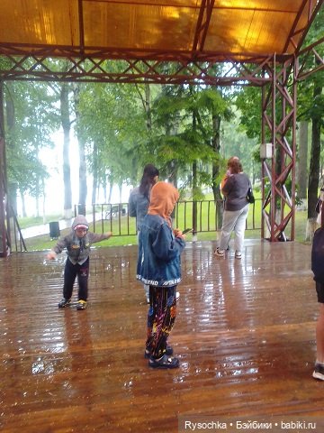 Мила показала и по перилам, и в траве провалялась, успела испачкать джинсы🙈😅, ну в общем прогулка удалась))).