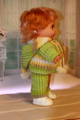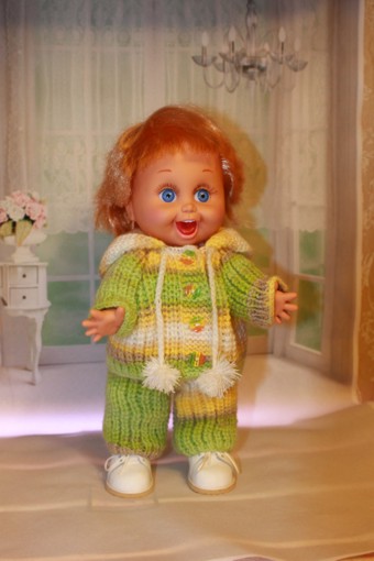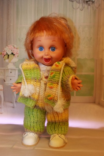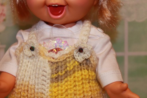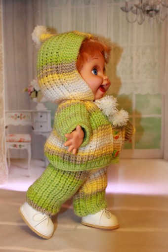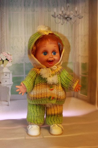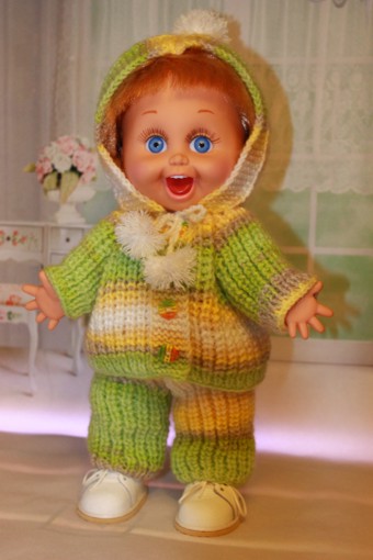 Доброго времени суток всем жителям Бэйбиков! Мы с Пенни Galoob baby face решили утеплиться. Взяли спицы, нитки и не долго думая начали вязать. И вот что у нас получилось.