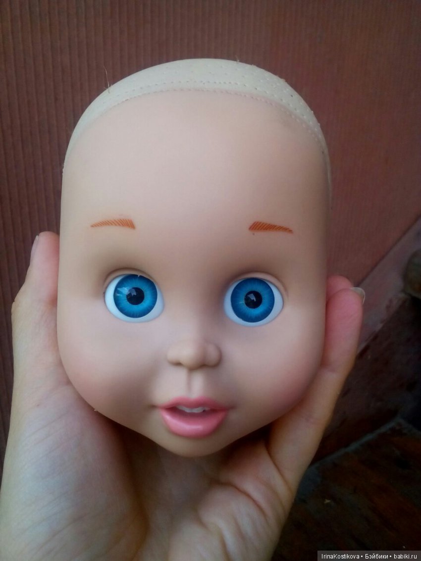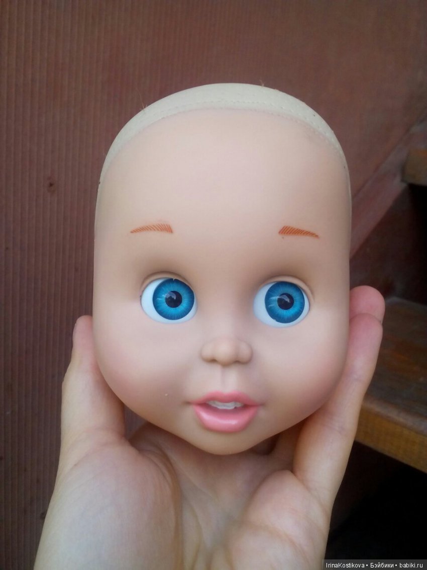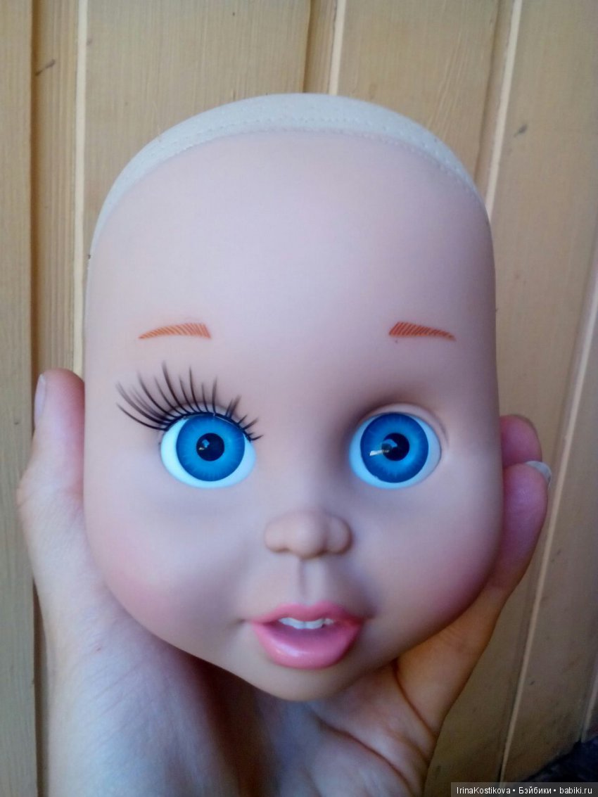 Часть работы Ира сделала самостоятельно. Отклеила старый парик, выщипала остатки прошивки, оттерла голову от клея, отмыла брови (оказалось это был просто карандаш, даже следов не осталось). А дальше у неё просто не было времени заняться куколкой, поэтому куколка приехала ко мне в форме «супового набора» готового к дальнейшей работе.