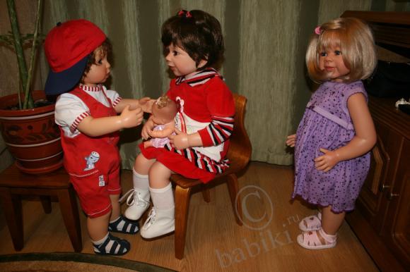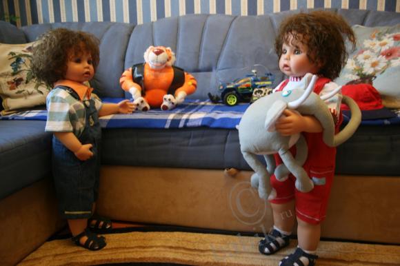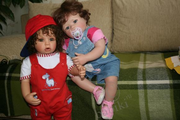 Всем добрый вечер! У нас сегодня были гости и я хочу вам их представить...:)Это малышка-реборн Ляля(молд Барри)и Данька(коллекционная кукла Пэдро от Герлинды Фезер)!!! Их мамочку зовут Лариса(Alisa).Данька- это ещё один «братишка» нашего Никитоса(Пэдро от Герлинды Фезер).девочки! Я СЕГОДНЯ ВПЕРВЫЕ ДЕРЖАЛА НА РУКАХ РЕБОРНЧИКА!!! Сказать, что я под впечатлением, ничего не сказать… одно дело видеть на фото, но держать на руках-это совсем другое!!! Это же настоящий ребёнок!!! Эти пальчики! Эти пяточки! Слов нет, что бы это описать!!! Вобщем, я под большииииим впечатлением!:)Значит теперь и реборнчика в свой список заношу.вот только никак не могу выбрать какого именно...:(мне нравятся несколько молдов… вобщем тяжёлый выбор!!! ну это было, скажем так, небольшое отступление… а теперь наши гости!!! Встречайте!