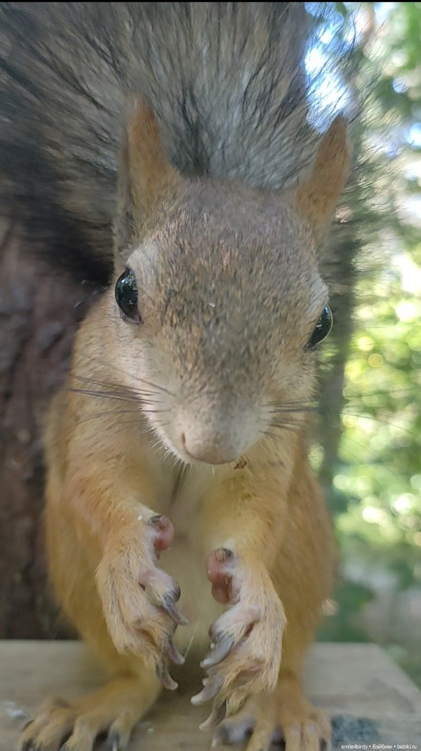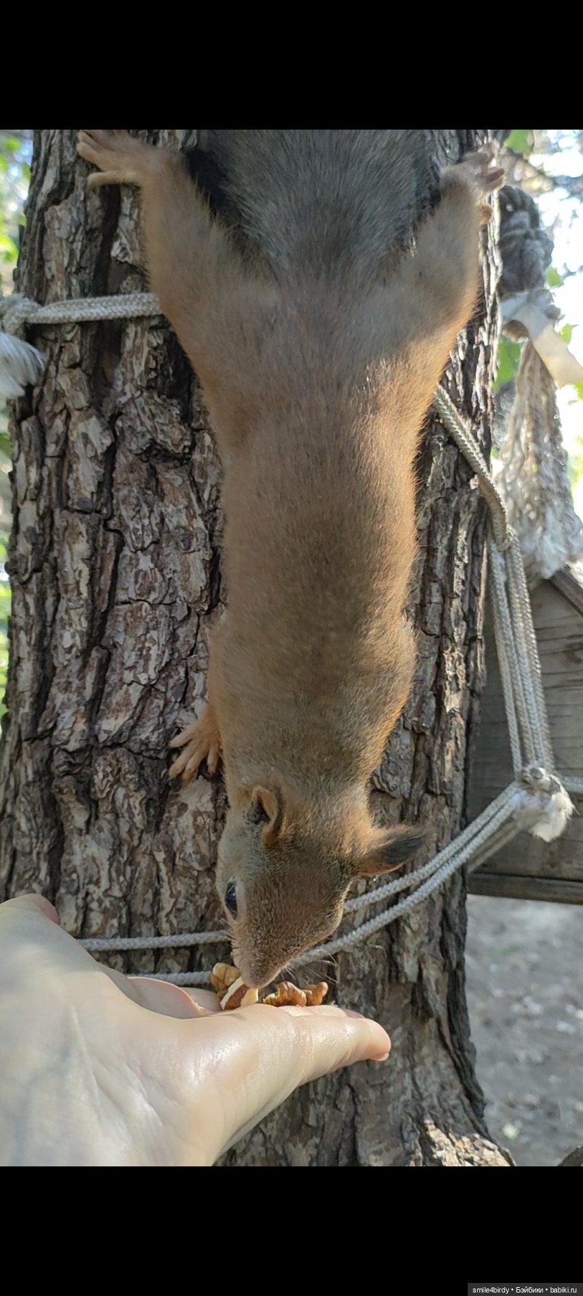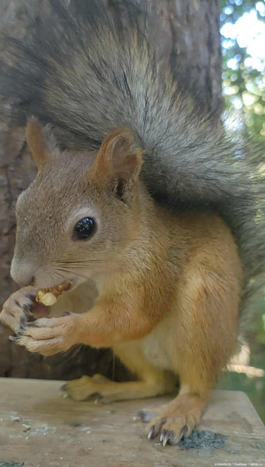 У нас в Подмосковье на участке висят кормушки для птиц, и белки тоже приходят в эти кормушки. Но мужу не удается их приручить, из рук орешки не берут.