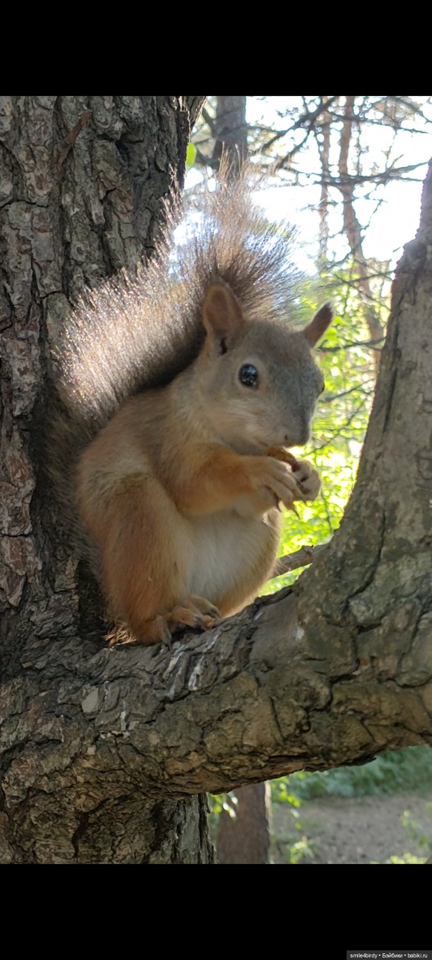 В Гремячей гриве, парк у нас, люди белок приучили к кормешке, просто так не остановишься. Белка подбежит проверить- не ей ли еду принесли?! Юрика фотографировала, белка примчалась попозировать. Это для Ули от Юры)