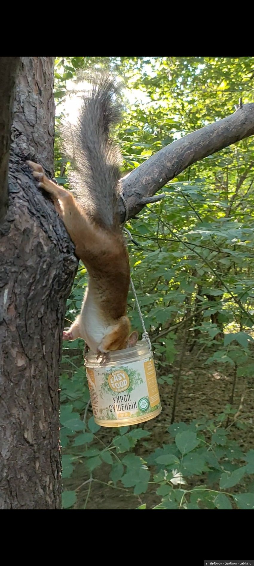 и тоже начала подобные баночки развешивать на деревьях :) И теперь с орешками ещё и воду ношу