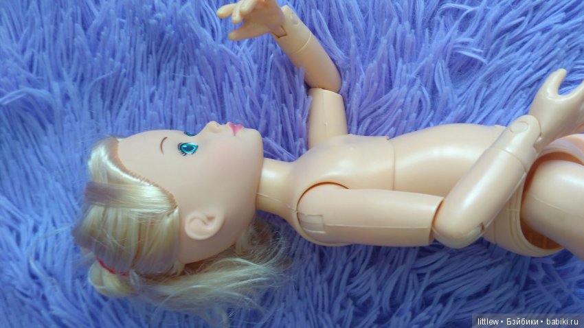 Из минусов — 3 цвета деталей на теле, соответственно 3 вида материалов ( тело посветлее из тонкого и звонкого пластика, стопы и кисти резиновые потемнее, коленки почему то сероватые). Кисти с некрасивыми швами, дефект отливки на всех мягких деталях, на левой руке -вообще какая то вмятина (фото 5, может не у всех, наверное это мне так повезло). Щиколотки очень мягкие, кукла не хочет стоять. суставы на щиколотках и запястьях, как бы не стыкуются с деталями, торчат уголки и вид у них какой-то пожеваный. Стопы морщинистые. Попахивает резиной, но не сильно. Ну и внутри у нее что-то тарахтит, какой-то маленький кусочек пластика может откололся, может при сборке попал.