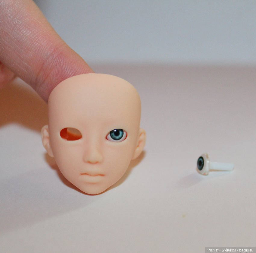 у Харуки в майке в горошек лопнули пазы для глаз внутри, т.к. глаза 8 мм становятся очень туго. но все же становятся и не выпадают)