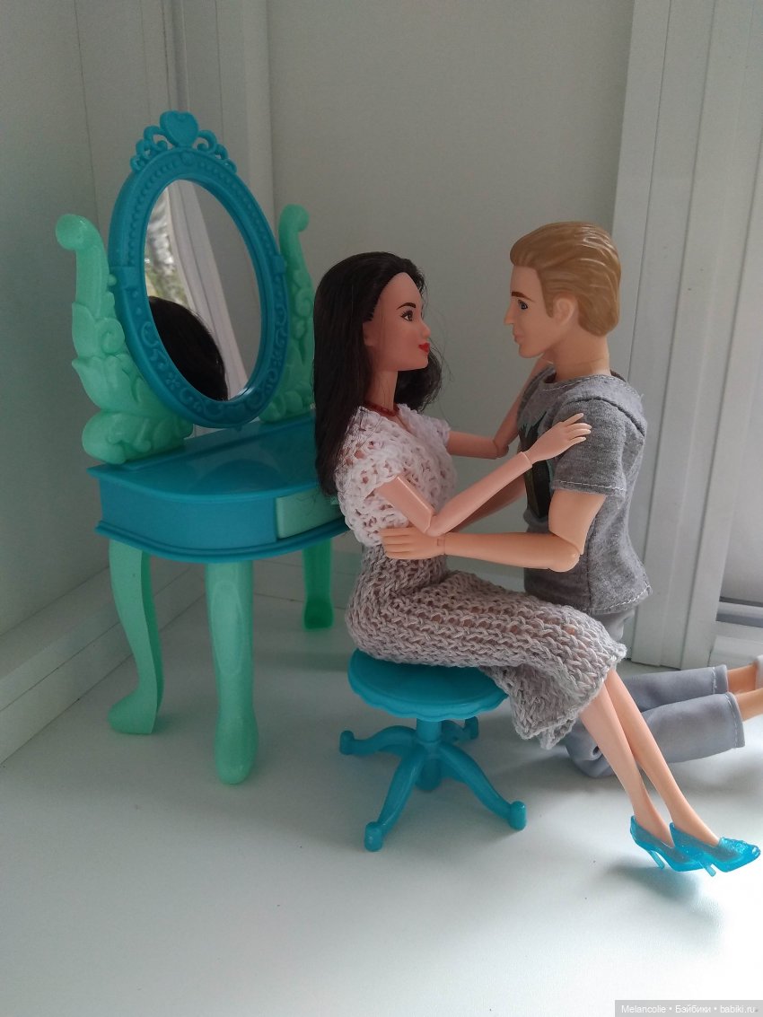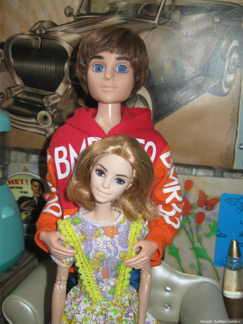 Сеня и Алёна. Сеня жил очень давно и был с разными именами и девушками. Это пока он был в своём первоначальном виде. Алёна — были голова и тело по разные стороны. Соединила и думала над именем. Пока не одела на неё футболку от Мишки Крузелинга. И щёлкнуло. Потом я на неё одела это платье и всё сошлось и запечаталось. И они сошлись. Сеня конечно мог бы по росту быть с Леной. Она дылда. Но… Вот как есть. Все ассоциации и совпадения случайны и ни к кому конкретному не имеют отношения.