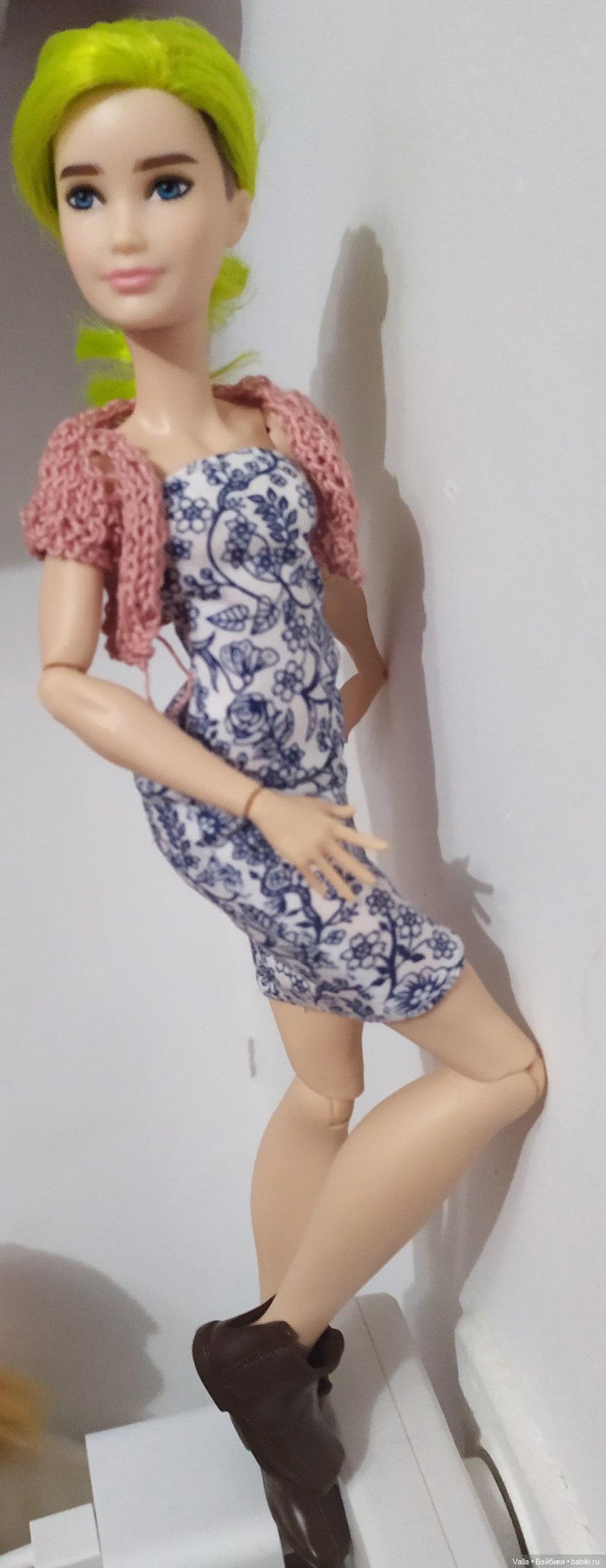 Подошло платье олсенки, я связала накидку на плечи, а ещё, подошли ботинки Кена ) Правда они на плоской подошве, но все ж не босая!