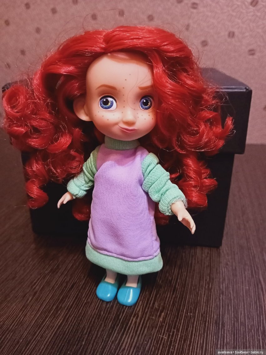 Принцесса Мерида меня просто очаровала копной непослушных пышных волос и милым личиком с россыпью веснушек. В коллекции появилась Мерида Disney Animators рост 40 см и ее сразу забрала себе дочка. А мне хотелось Мериду формата барби, но все выпущенные в этом формате мне как-то не приглянулись. И вот увидев Мериду от Hasbro Disney Princess, я поняла, что это она! Пересадив ее на тело йоги-пышки у меня получилась моя идеальная Мерида — с копной непослушных пышных волос и милым личиком с россыпью веснушек!)
