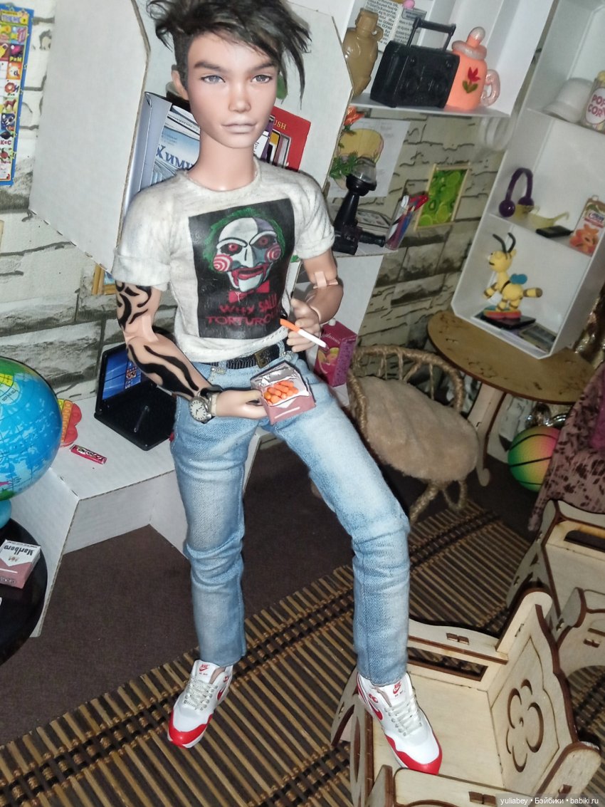 Конечно, у монстро-тела более странные пропорции, особенно рядом с барби и кенами. И всё же я выбрала это тело. За большую подвижность рук, большую пластичность и экспрессивность. И ещё потому, что я очень хотела низкого тощего парня. Мне нравятся тощие парни).