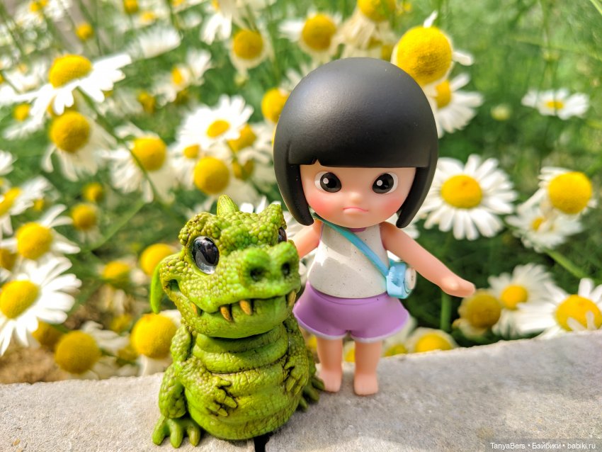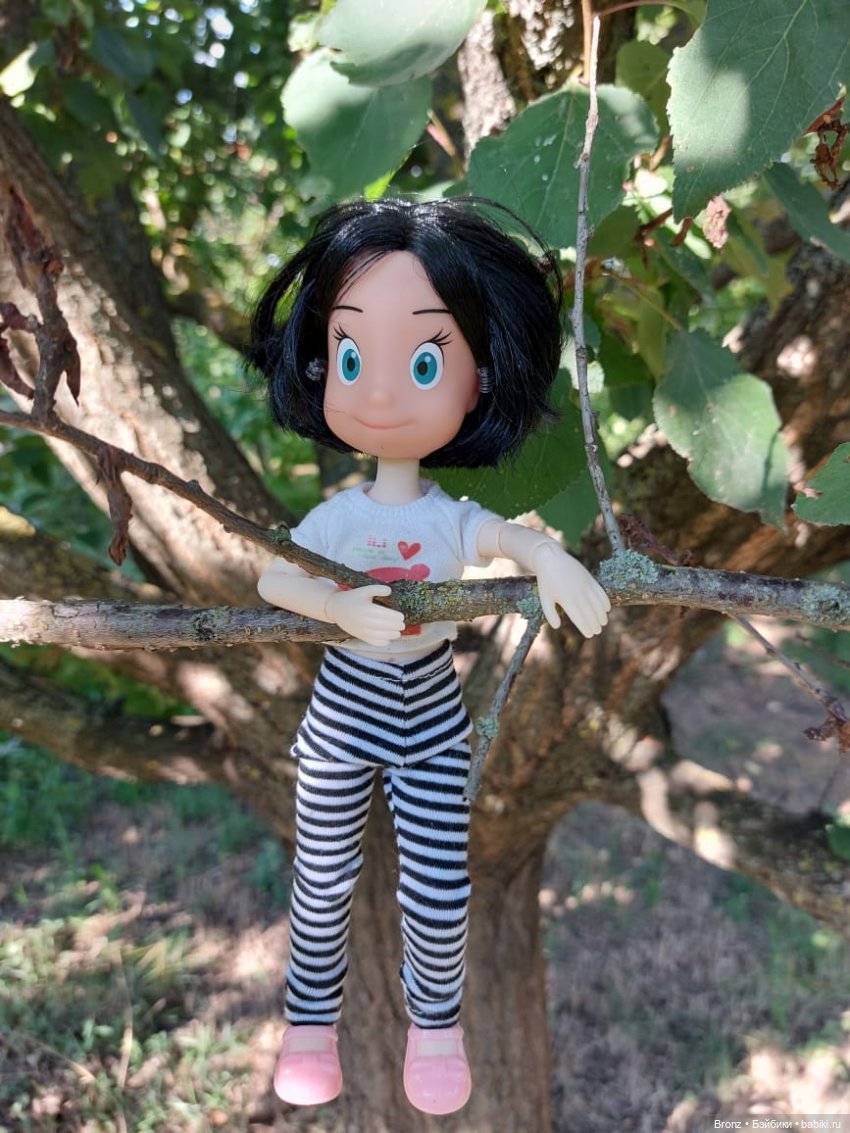 Сидела она на маленьком дубовом тельце. Во время поездки в Ейск, в киоске я увидела куколку типа бабольки, но см 20 ростом. Несмотря на разнотон, состоялась пересадка. Лерасик обрела подвижность и тут же рванула осматривать двор.