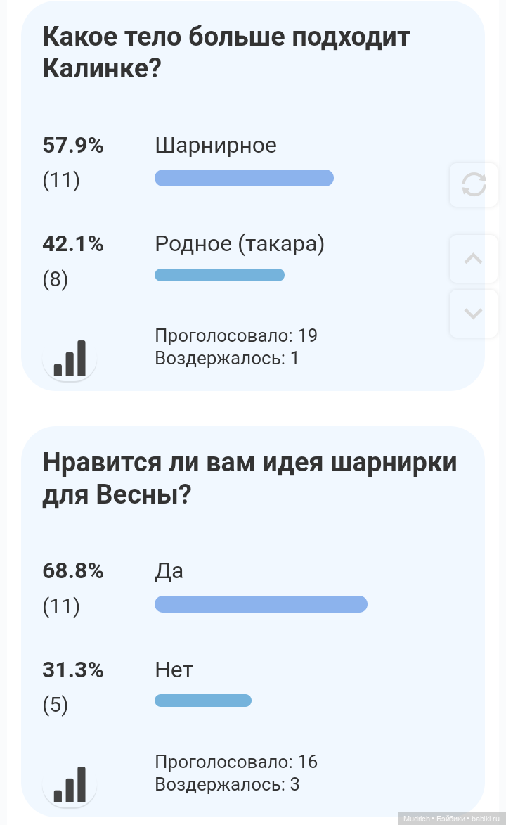 Вот на этих результатах, прибавив 11 проголосовавших вне сайта, я определилась. Но голосовалку не закрою. Потому что всегда интересно вернуться в топик гораааздо позже и посмотреть.