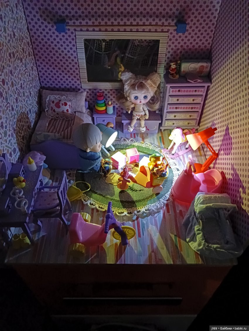 Муж комнату для неё доработал сделав ещё одну стену с окном, карниз моё изобретение на магнитах, занавески в проекте, пока некогда ими заняться.Ещё купили Нюсе коляску, она прям в труселях требовала прогулку на улице, но согласилась подождать пока закончится дождь.Братец наш назвался Лёвой, живут с Нюсей дружно, по очереди друг друг вредничают, стоят по углам и ревут.