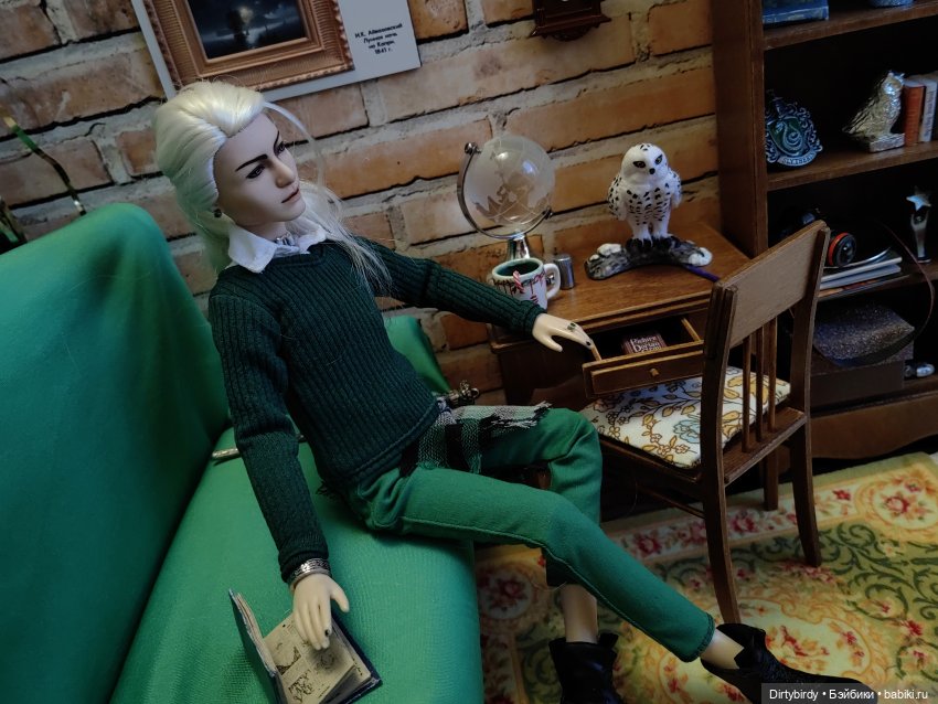 Женевьевойпотанцевать, но «цвет настроения зелёный» все планы мне попутал))Знаешь, нервов он нам с художницей потрепал, но зато это вот прям сто процентный Малфой из моей головы и некоторых фанфиков (причем про фанфики я узнала уже после фотосессии и этой его квартиры))