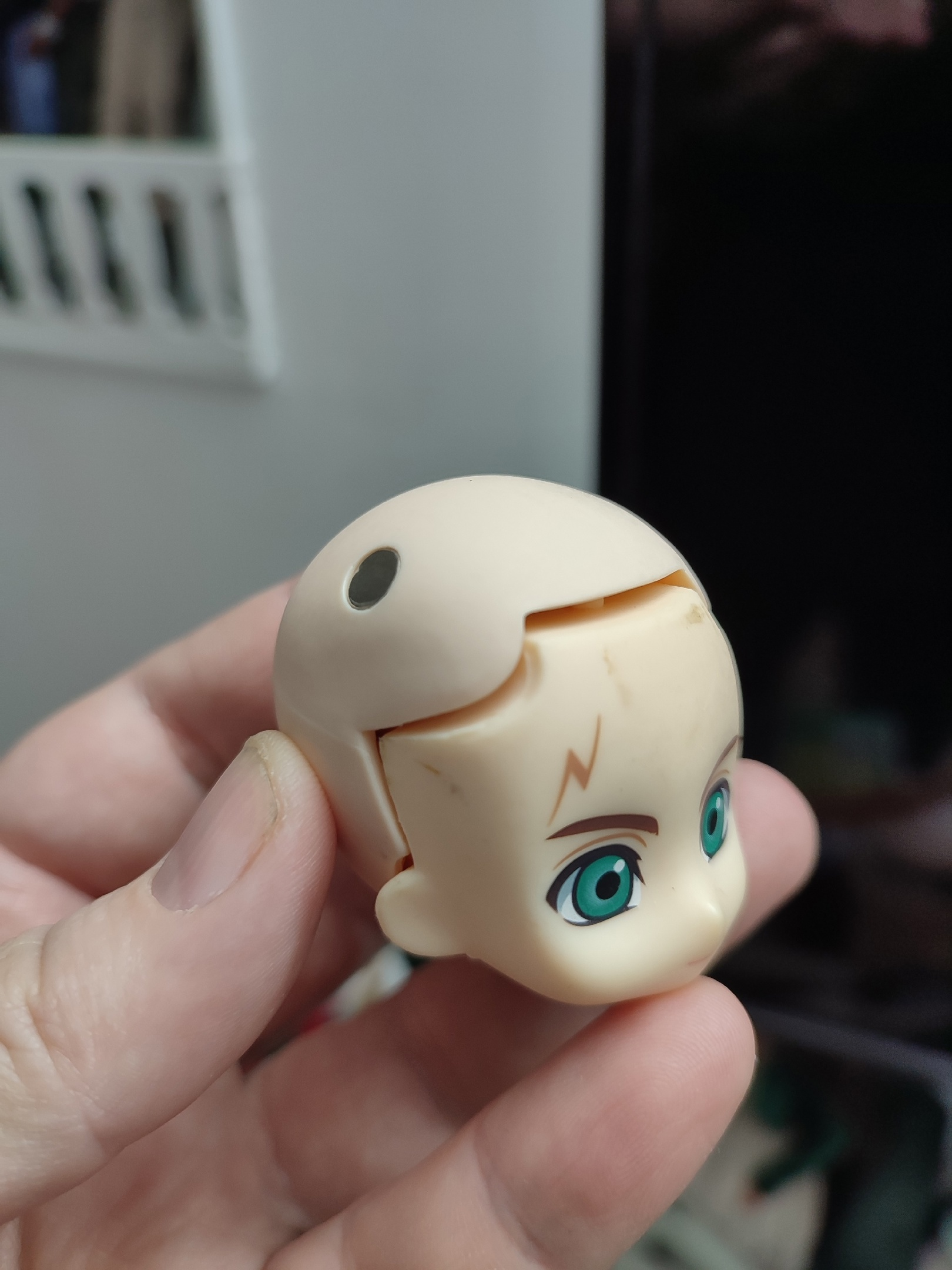 Померила заказанную вместе с телом крышку для того, чтобы использовать головы OB11 c париком с настоящми волосами. Подошла она только лицу нендороида, да и то не идеально. Так что пока отложила. У бывшего Гарри (а у меня он Альбус-Северус) и так есть приемлемая прическа. Так что заказала еще одного поддельного нендороида на разбор. А кого — пока сюоприз.