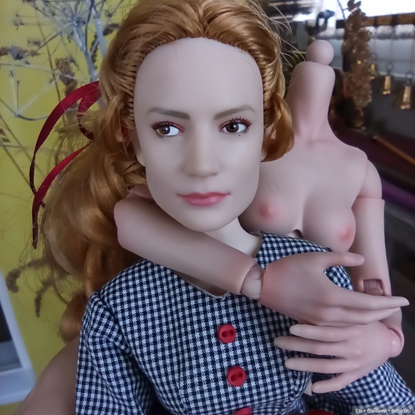 Сначала я хотела приделать ее голову на какое-либо пышное тело Mattel: вроде терпимо, но все же голова темнее и будто серее/розовее этих тел. Потом вспомнила про Worldbox, тоже не идеально, но опять же терпимо: некий общий сероватый подтон, да и яркие щеки тут к месту, сочетаются с блашингом. Ключевым фактором в выборе Worldbox стало удобство «монтажа/демонтажа». И ура! У этого тела появится вторая голова, наконец. Съемка при искуственном освещении, потому некие искажения присутствуют.