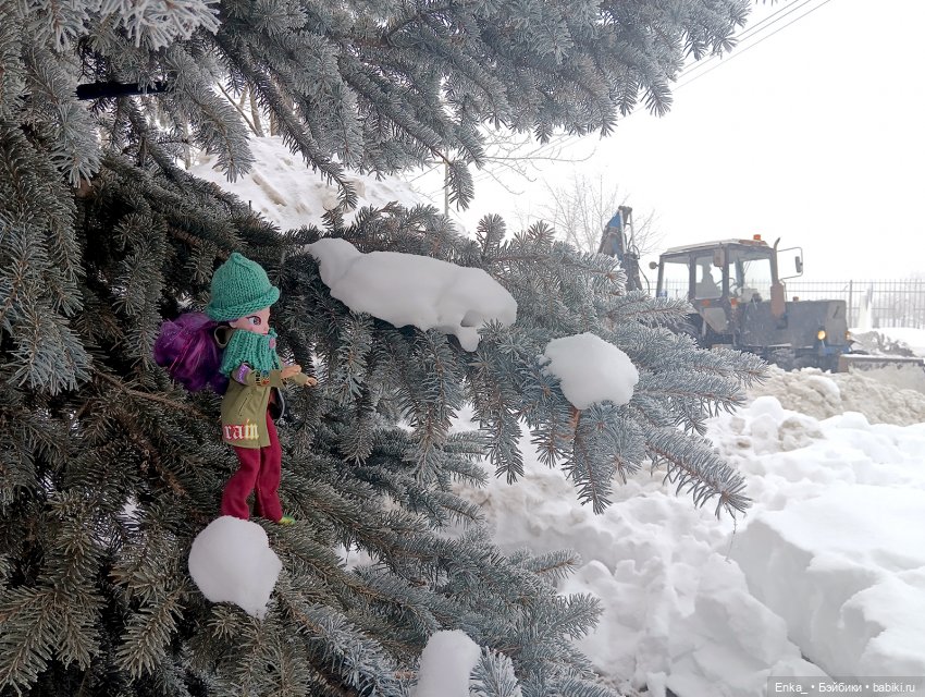 В чудесный снежный день, когда на землю опустился легкий снежок, а веточки покрылись изморозью, Клементина отправилась на прогулку.Сугробы, заснеженные елочки, красота!