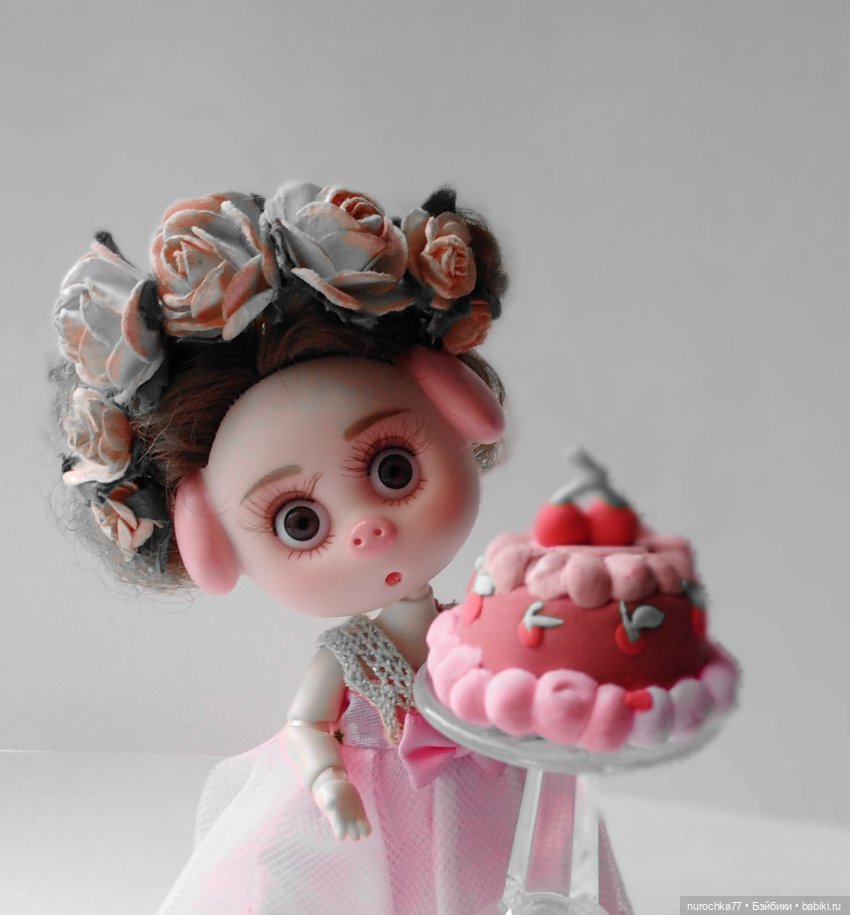 Дорогие друзья! Сегодня ровно год, как у меня живёт малышка Нафочка. А это значит, что у Нафочки сегодня день рождения. Говорят, день рожденья — грустный праздник! Но не у нас! Нафочка приглашает к себе в гости всех друзей хрюшек, поросят, куклят, зверят и всех всех всех! Потому что Нафочка невероятно обаятельная и привлекательная! В подарок у Нафочки была персональная фотосессия! Топик полон Нафочкой и её очарованием! Дочка подарила ей тортик. В качестве подарка- игрушки у Нафочки авторский медвежонок с апрельской выставки. Я же, очень взрослая тётка, играюсь с упоением с этой крошкой уже целый год и люблю её все больше и больше! Это 22 топик с милой Нафочкой!!! Приходите в гости, дарите Нафочке лайки и сердечки, а она обязательно вас угостит именинным тортиком!