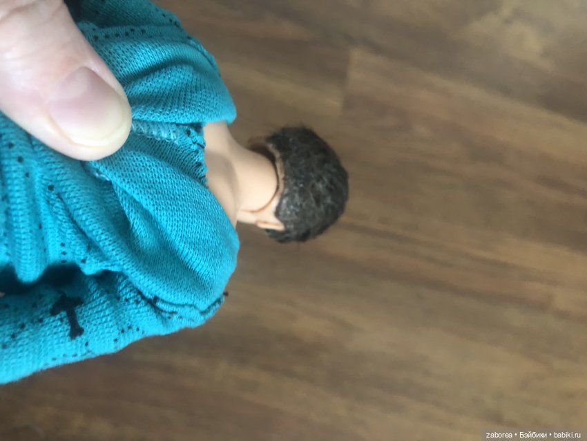 Голову решила не прошивать, а флокировать. Нарезала мелко волосы в баночку. Намазывала потихоньку голову момент кристаллом и посыпала. Затем наклеила отдельные прядки сверху, формирую причёску. Клей не разъедает винил. Проверено. Не он первый, не он последний:)))
