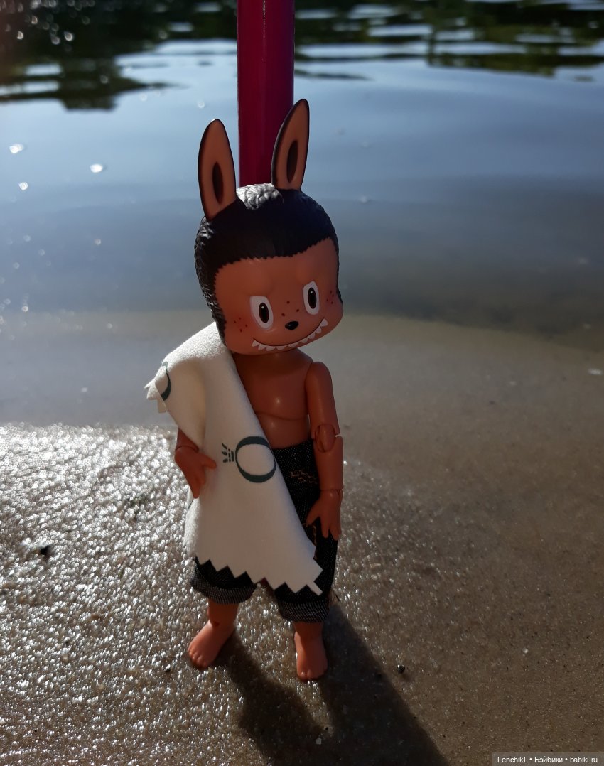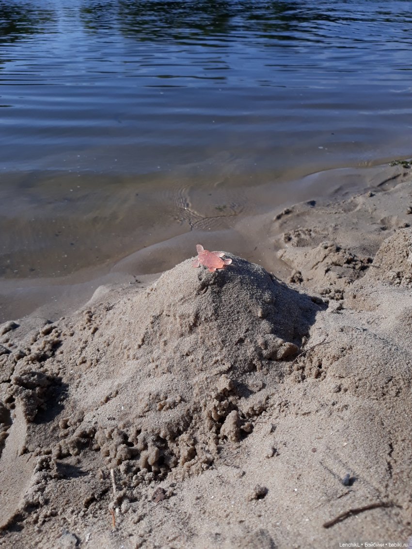 Конечно это не море, но в жару мы с зубастым зайцем рады любой водичке. Водичка мутновата, да и течение такое, что реквизит привязывать приходится. Только представьте — вокруг бурлит вода, по краям водоросли, ползают нахальные улитки, мальки кидаются как пираньи на всё, что в воду упадёт — начинаешь понимать, как это будет, если вдруг выпьешь уменьшайку и упадёшь в аквариум.