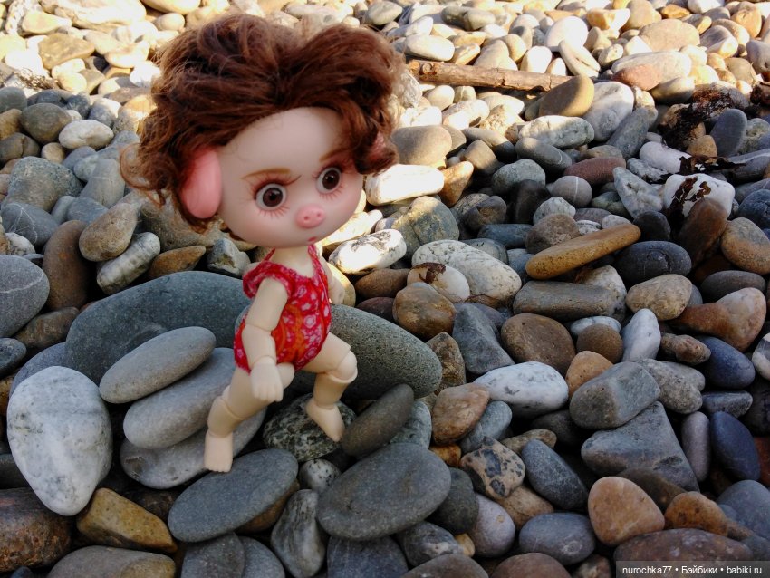 Мокрые камешки скользкие Вставать опасно! Можно упасть и причинить вред своим неугомонным ножкам! — размышляла Нафочка и делала выводы из Нюрочкиного поведения, которая полезла туда, куда не следует и в результате повредила ногу 🙈Нафочке было жаль Нюрочку, но ещё больше она жалела, что теперь у неё не будет фотосессией в новых платьицах, которые она специально привезла на юг покрасоваться…
