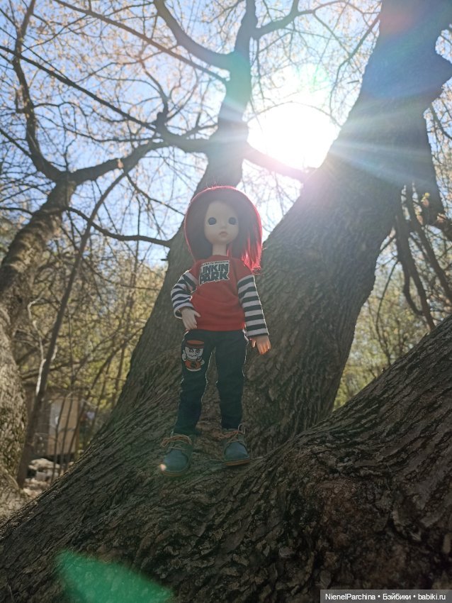 Приветствую всех! ☀️💚😃Изначально я собиралась снять сегодня фото для стихотворения, но когда вышла на улицу, солнце, нужное для этих фотографий, уже ушло, поэтому я пофотографировала кукложительницу не для стихов, а просто так 🙂 Погода была не очень солнечная, но зато и не было дождя, в отличие от прошлой прогулки 🍁☀️ А для стихотворения подожду следующей возможности и солнечной погоды, и как раз успею причесать поаккуратнее и доделать одежду 😌