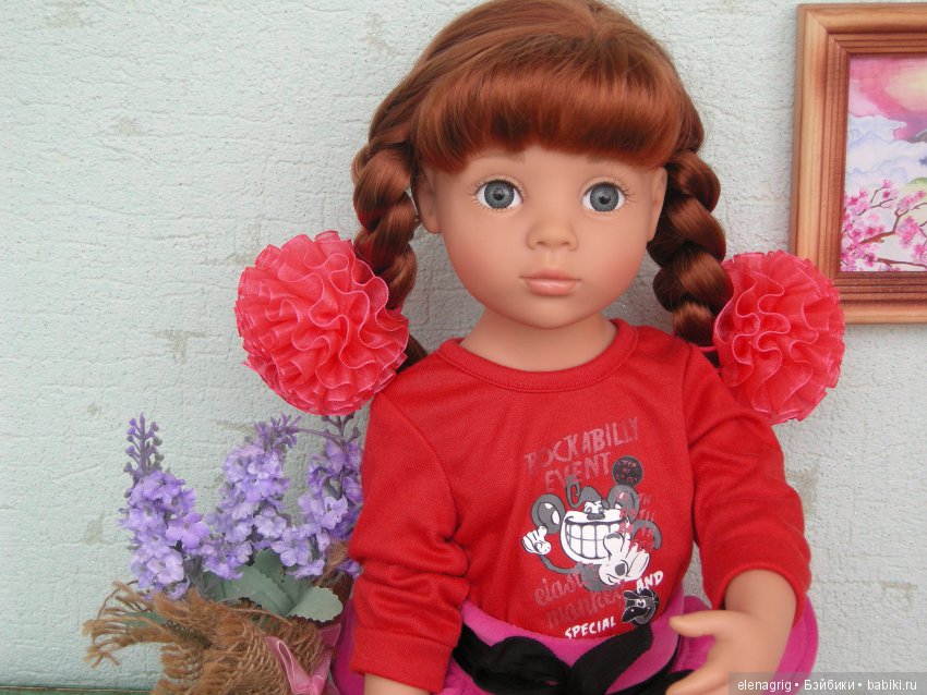 Добрый день всем! Вот говорили мне, что не хватает для тройки рыжульки, и вот девочка приехала!!! наше рыжее солнышко.К шарнирным я относилась спокойно, даже как то побаивалась, как эти шарниры работают, не будут ли падать от плохой натяжки, но вот решилась… Приехала девчушка Gotz.И ростиком оказалась чуток повыше и ножка по размеру чуток подлиннее, но мне очень она понравилась).И натяжка вполне нормальная, девочка хорошо стоит, держит позы.Фото в одних нарядах, не переодевались, т.к. хочется просто показать эту рыжульку.Заходите к нам со своими девочками