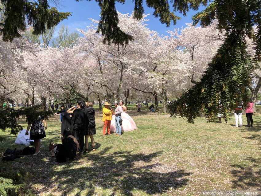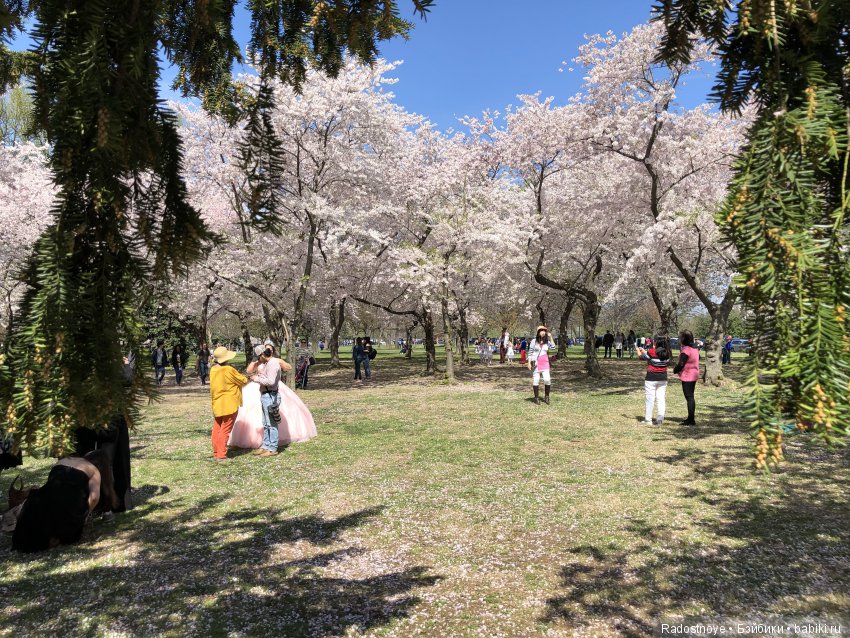 И вот мы пришли. Народу видимо-невидимо. Говорят на разных языках, любуются сакурой.