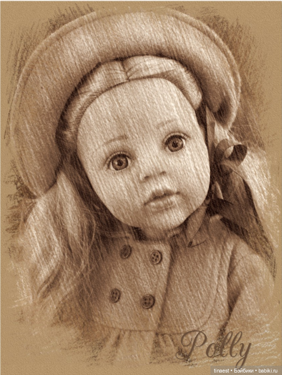 Куколка многим знакома, ее имя Грета, но она настолько нежная, что мне очень хотелось дать ей другое имя, с более нежным звучанием.Я назвала ее Полли.Думаю, что Грета, своей детской наивностью и нежностью, чем-то похожа на героиню фильма «Полианна».На необыкновенную девочку, очень добрую, нежную, с удивительно щедрым на любовь сердцем.Моя Полли тоже умеет дарить радость, ведь в ней столько очарования! Всегда есть что-то, чему можно радоваться! Пусть даже маленькой, но очень солнечной девочке-кукле.