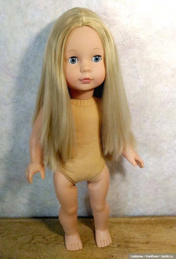 Нужно вывести следы ручки на личике, привести в порядок волосики и подлечить глазки. Внутри у куколки механизм, я его пока не пробовала, не знаю что она умеет, не знаю исправен ли. Когда возьму девочку на лечение, тогда уже полностью её обследую.