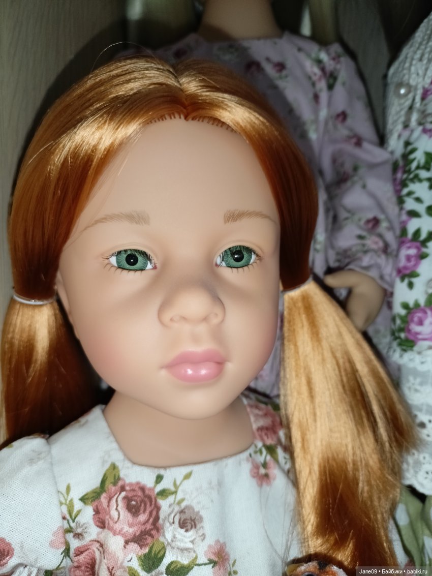 Есть Айла (Исла) светлый рыжик и Габриэль тёмный рыжик, а Карина смешаны прядки светлые с тёмным. Я её покупала в пару к рыженькой Катарине) Вот Мила из Мориц подошла бы идеально к Карине), тоже глазки изумрудные)