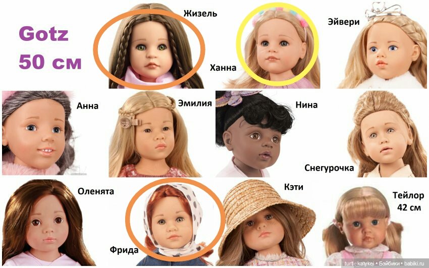 Эмилия, Катарина, Мила и т.д. Выпускается на шарнирном теле 50 см. babiki.ru/blog/gotz/314922.html