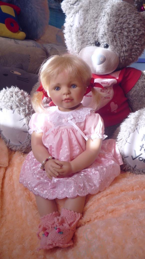 Есть у меня такая красавица. Давно хотела какую-нибудь пышечку крупную и вот увидела ее. Ни описания, ни фотографий подробных не было, но мордашка такая симпатичная, что я взяла не глядя, что называется. Девченка приехала даже лучше, чем я ожидала. Но вот информации про нее у меня нет. Как ни искала, ничего про нее не могу найти, даже имени не знаю. Так что если кто знает девчушку — буду премного-благодарна за любую информацию!