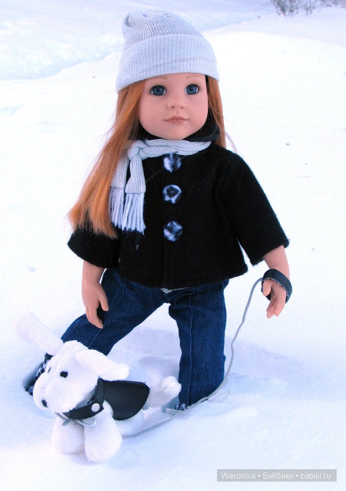 Вторая куколка — Сара с собачкой. Эта рыжая красавица с голубыми нежными глазками, Сара просто неотразима. И аутфит также подчеркивает ее индивидуальность. Нет ничего лишнего.