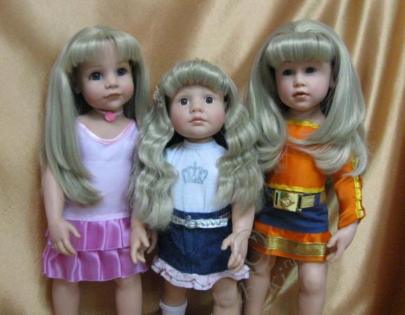 Кстати, недавно на ДП выкладывали домашние фото рядом Эмили и Кэти — куклы АБСОЛЮТНО одинаковые! Только цвет глаз разный. Когда у Кэти повязку со лба сняли, то чёлка поднялась и точно такая же как у Эмили стала, наверно и волосы одинаковой длины. Это я к тому, что приходилось слышать на форумах разговоры типа: «Эмили — фу, Кэти — лапочка» — обидно за мою девочку