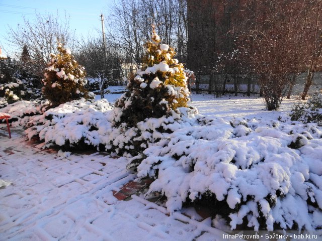 Во-вторых, не надо волноваться за сохранность деревьев, кустов. Природа имеет свойство выживать даже в экстремальных катаклизмах. Возможно, весной что-то придется поменять, пересадить, посадить, немного поменять дизайн. У меня каждую зиму вымерзает один-два кустика роз. Причины мне неизвестны, укрываю одинаково, но все равно полностью не сохраняются.