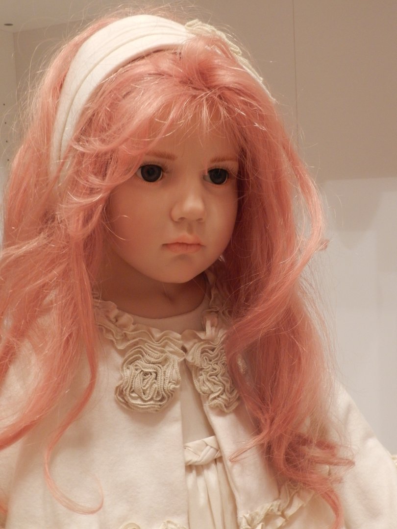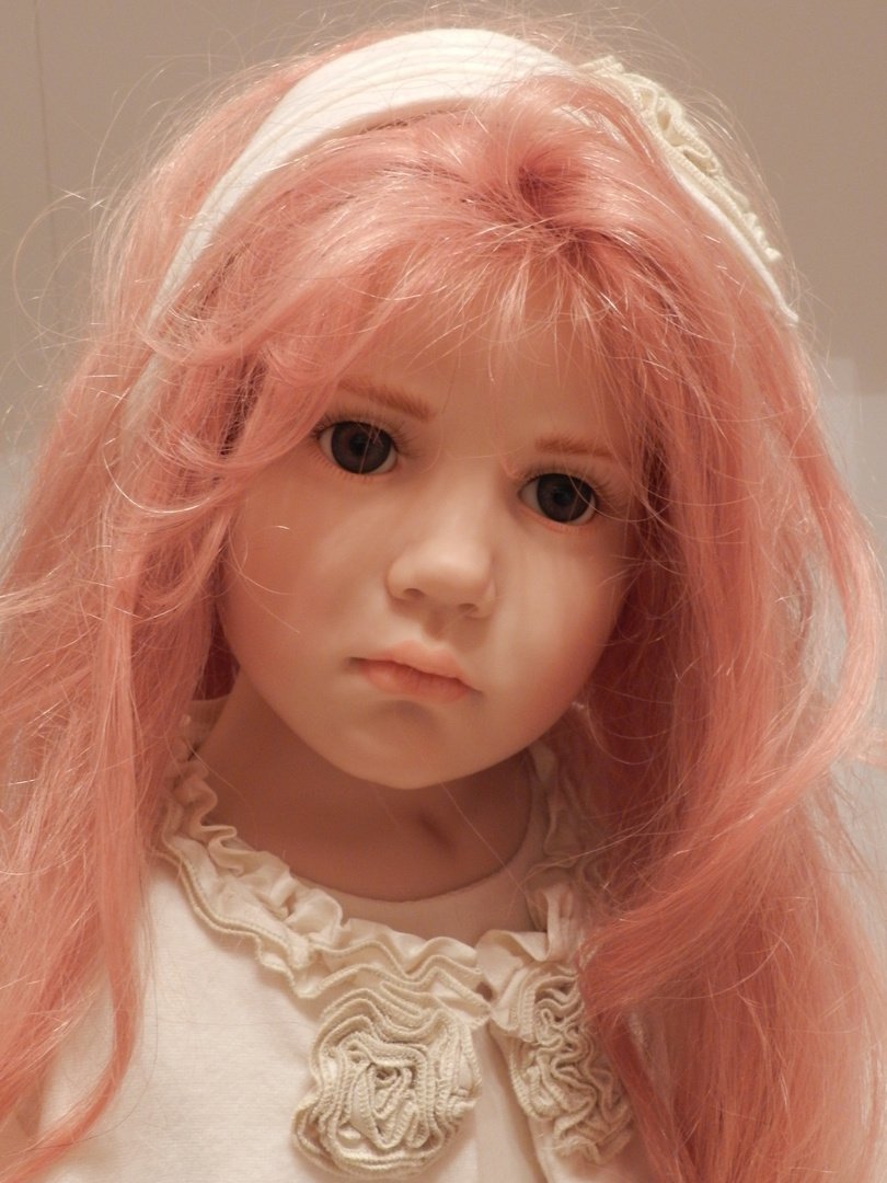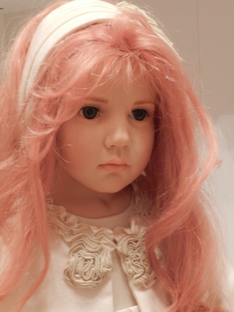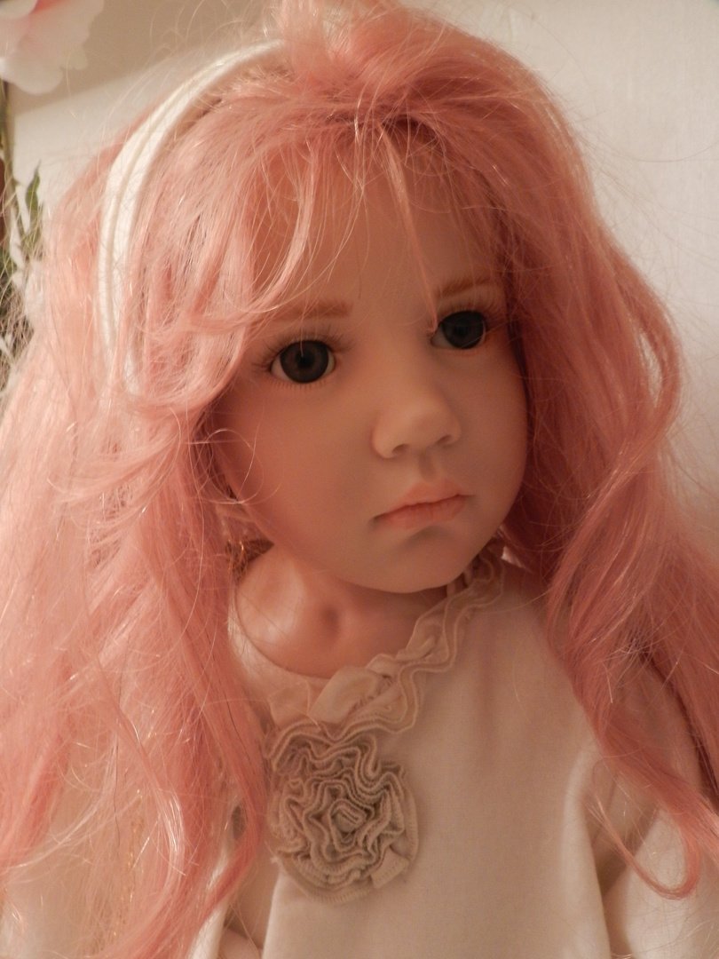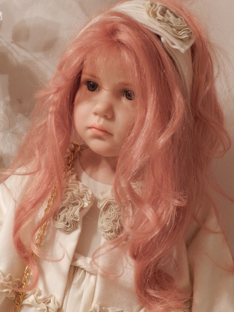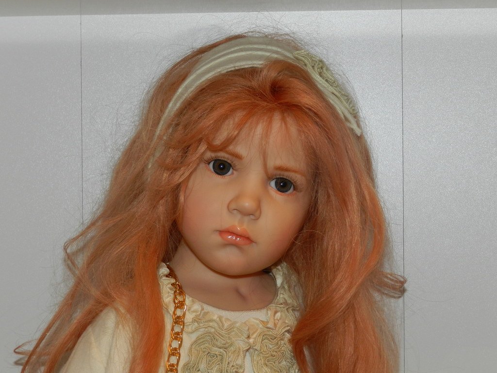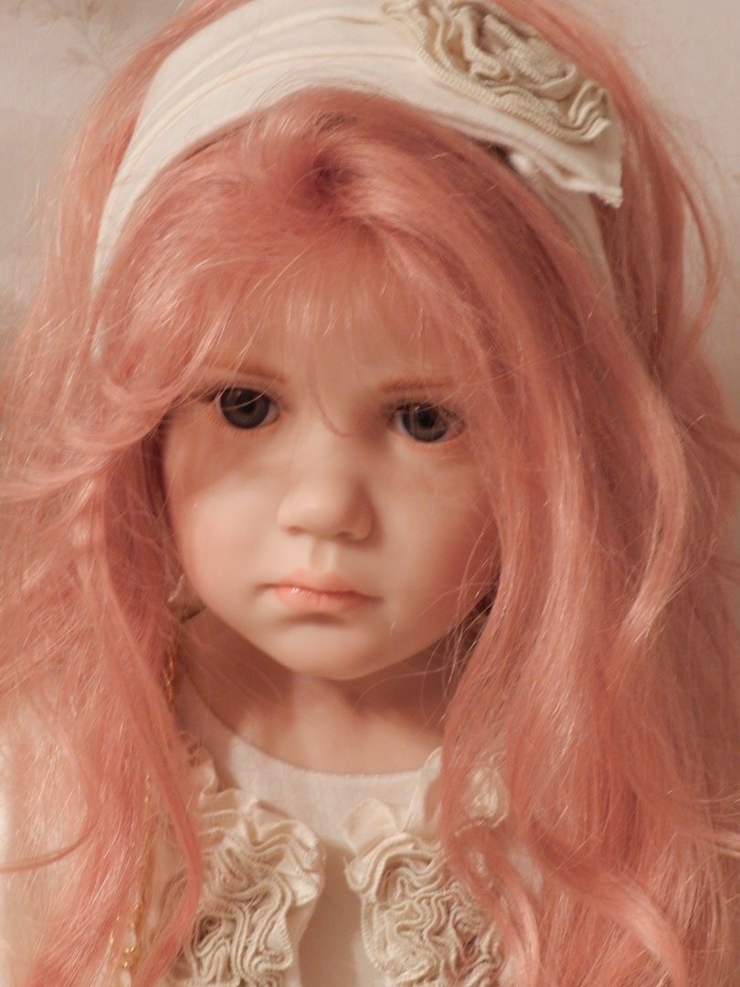 Итак, Люсиль — студийная девочка из резин, коллекция 2010 года под девизом «Как Мило», лимит девочки-150, рост 85 см, густые, натуральные волосы рыже-клубничного цвета, глазки-стекло, шикарнейший аутфит из натуральных тканей, что мы даже ещё не пытались переодеваться, до чего красив наряд и вообще, Люсилечка, ну очень сладкая девочка! Клубничка!