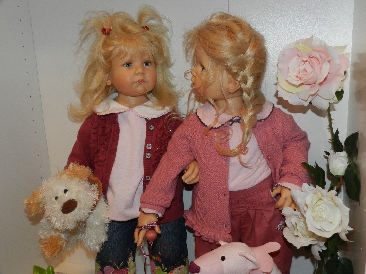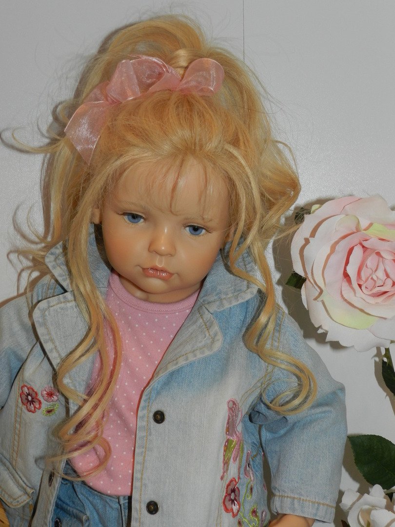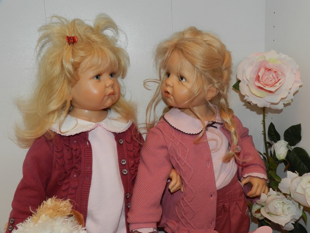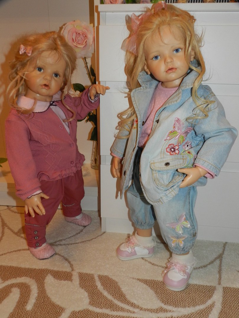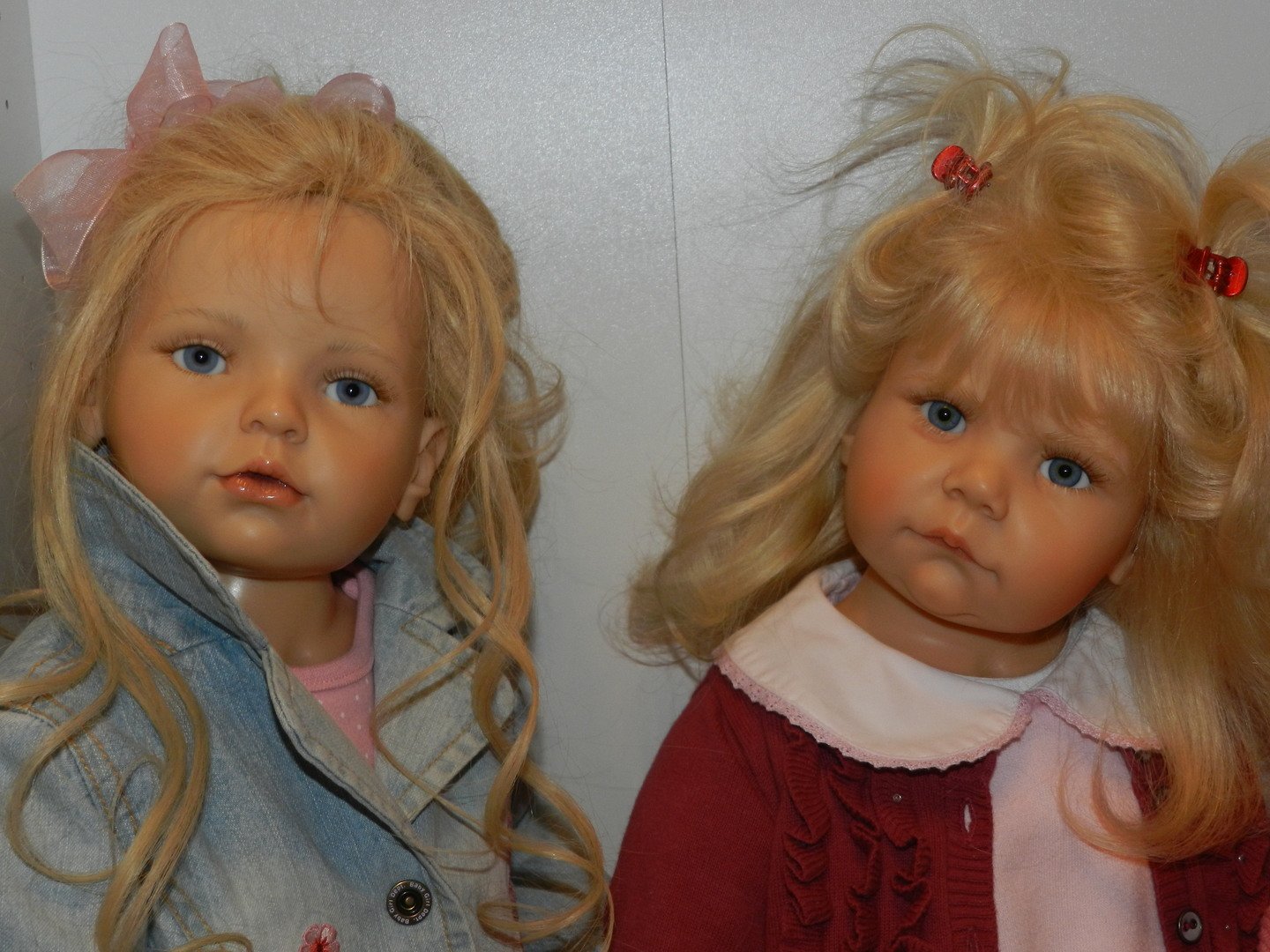 Все три девочки из первого выпуска кукол Хильдегард Гюнцель из резин, коллекция 2006 года, лимитированный выпуск в 250 шт.каждая, Шпатсхен и Хенрика ростиком в 68 см, а Фине- 70 см.У всей троицы парички из натуральных волос, глазки стекло, наряды из натуральных материалов.Девочки до того хороши, что до сих пор вызывают горячий интерес к себе и желание заполучить их в коллекцию.Их промо фоточка…