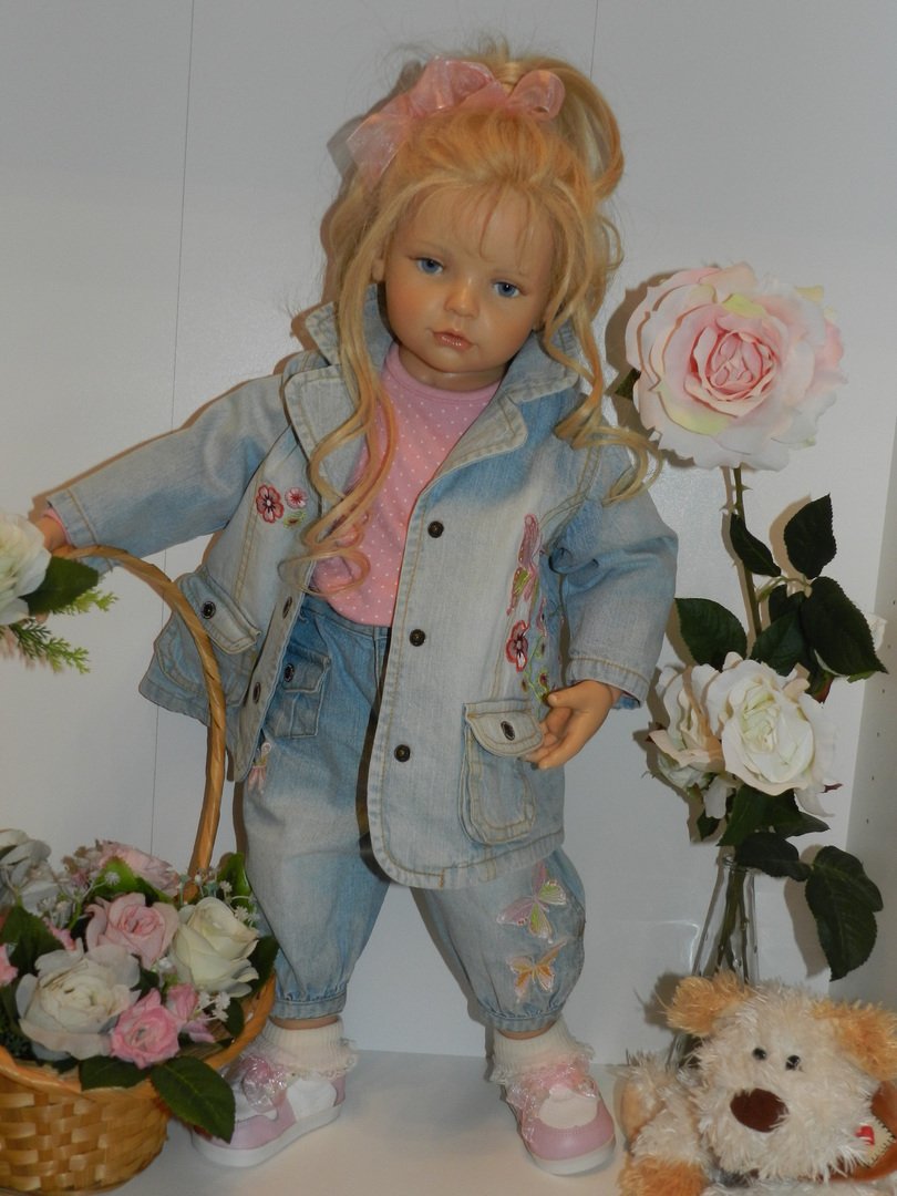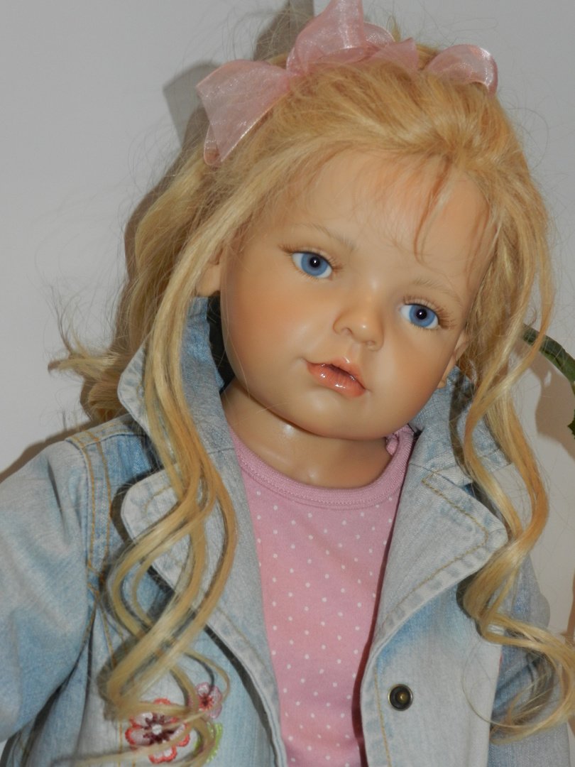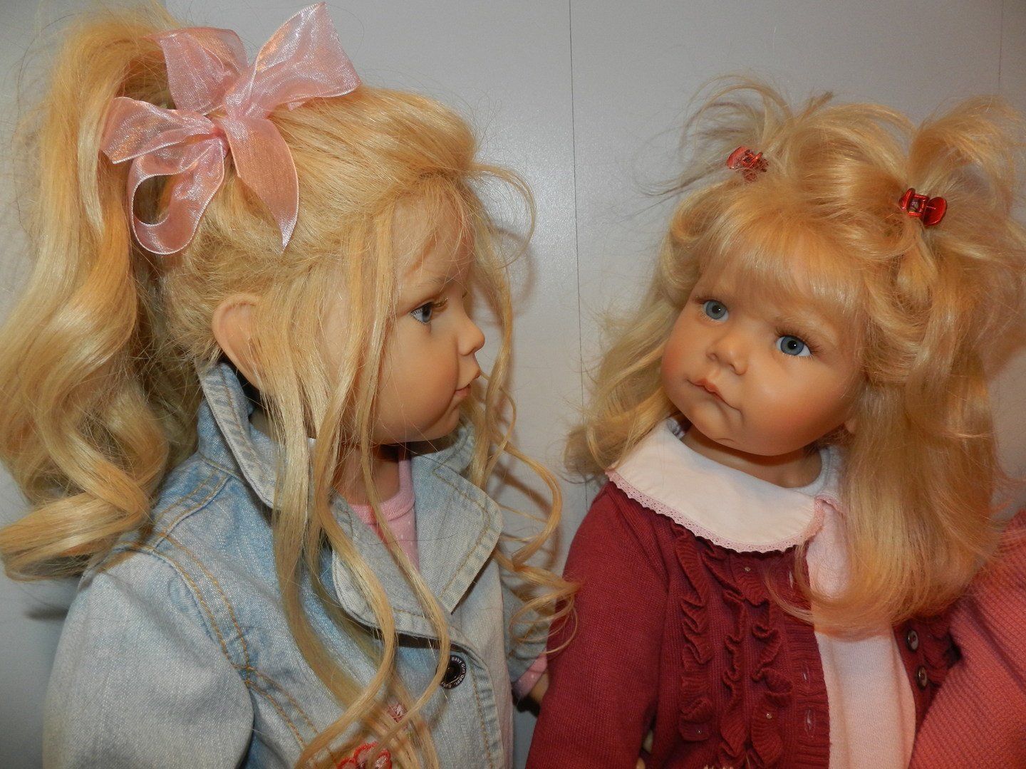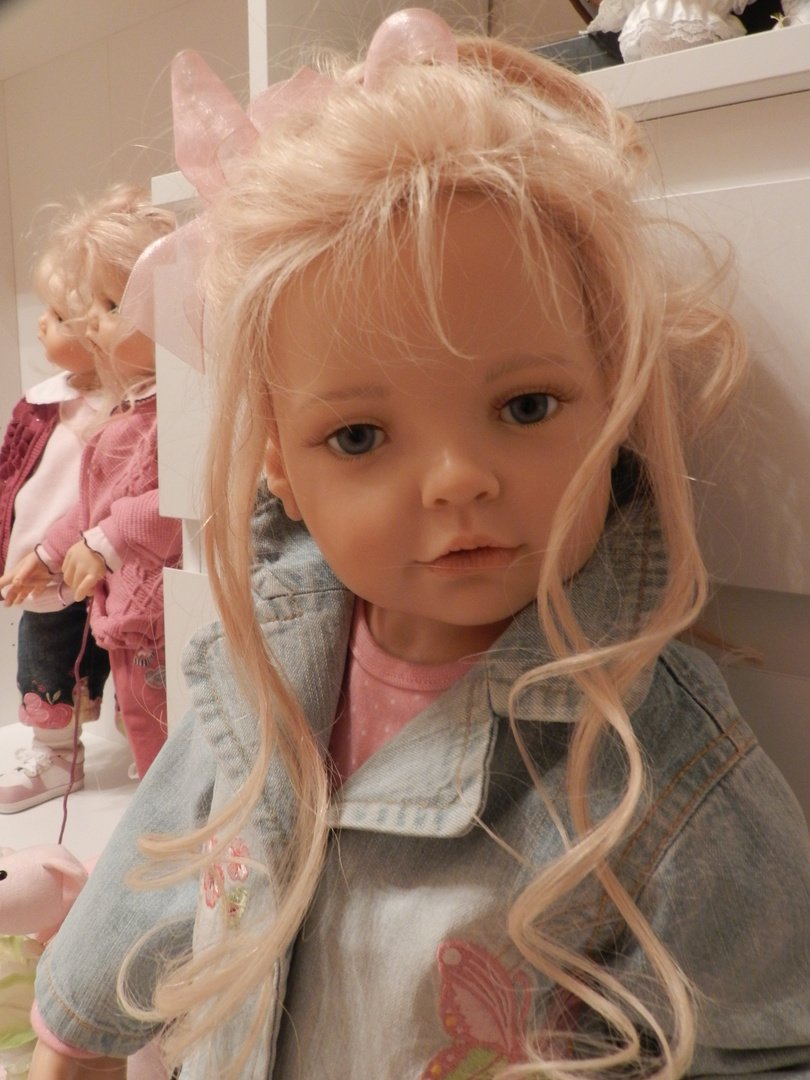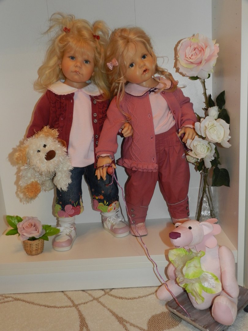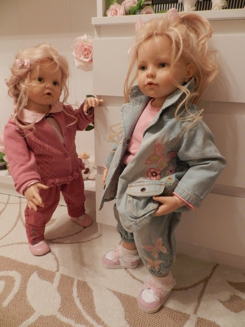 Все три девочки из первого выпуска кукол Хильдегард Гюнцель из резин, коллекция 2006 года, лимитированный выпуск в 250 шт.каждая, Шпатсхен и Хенрика ростиком в 68 см, а Фине- 70 см.У всей троицы парички из натуральных волос, глазки стекло, наряды из натуральных материалов.Девочки до того хороши, что до сих пор вызывают горячий интерес к себе и желание заполучить их в коллекцию.Их промо фоточка…