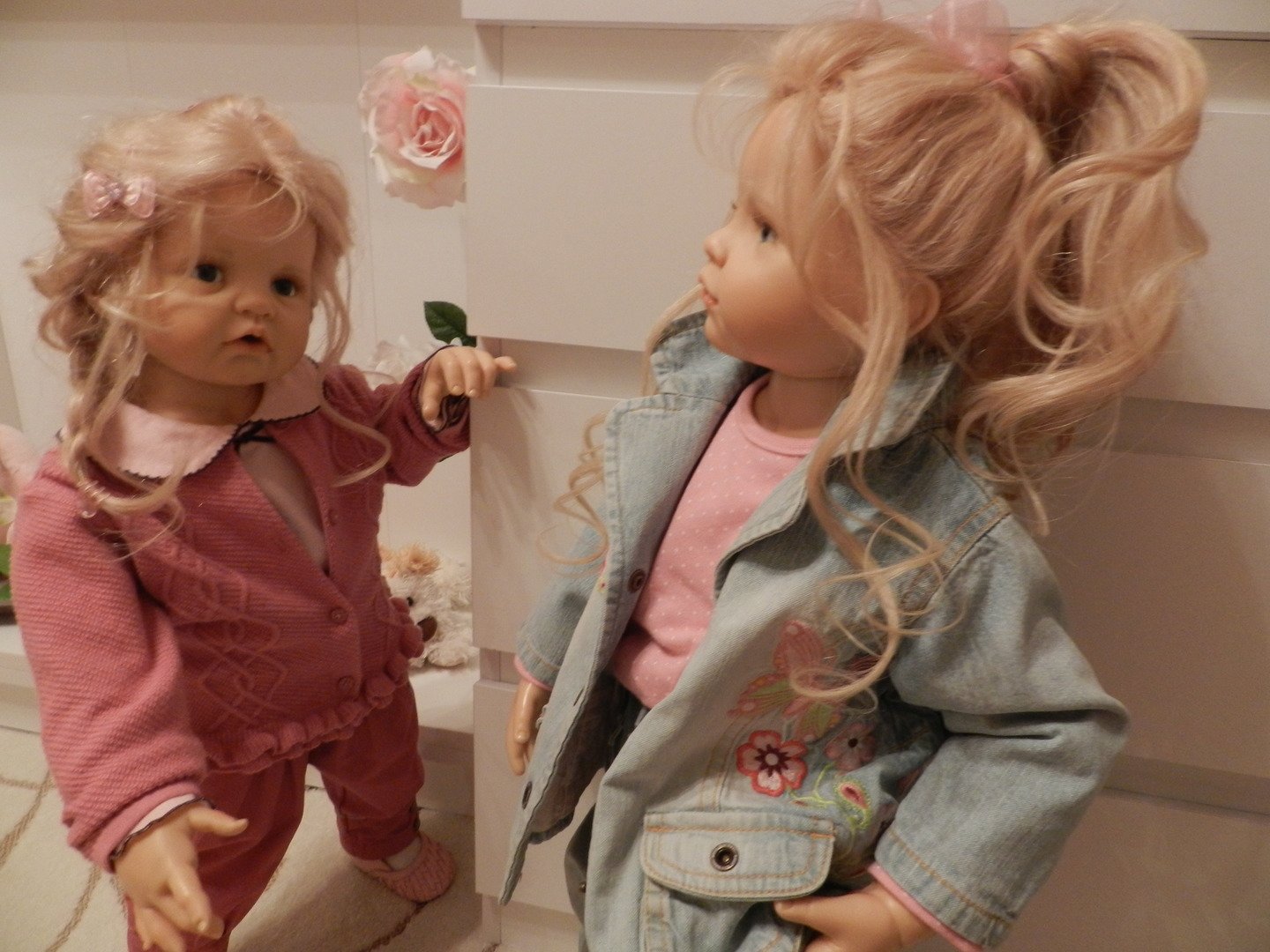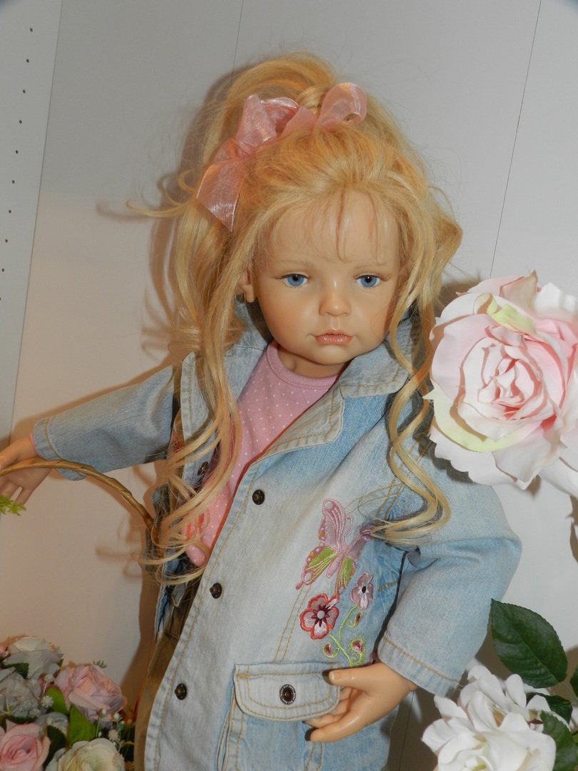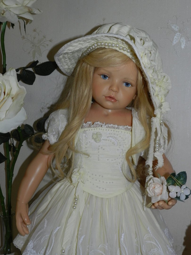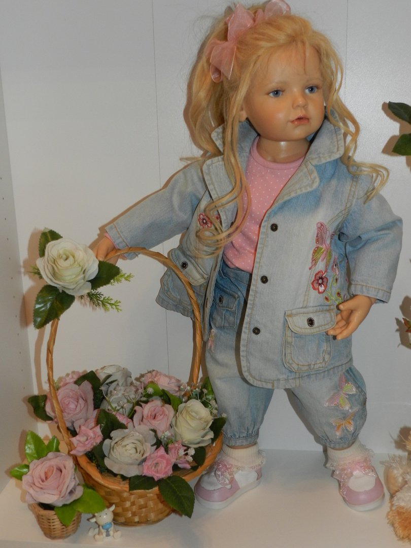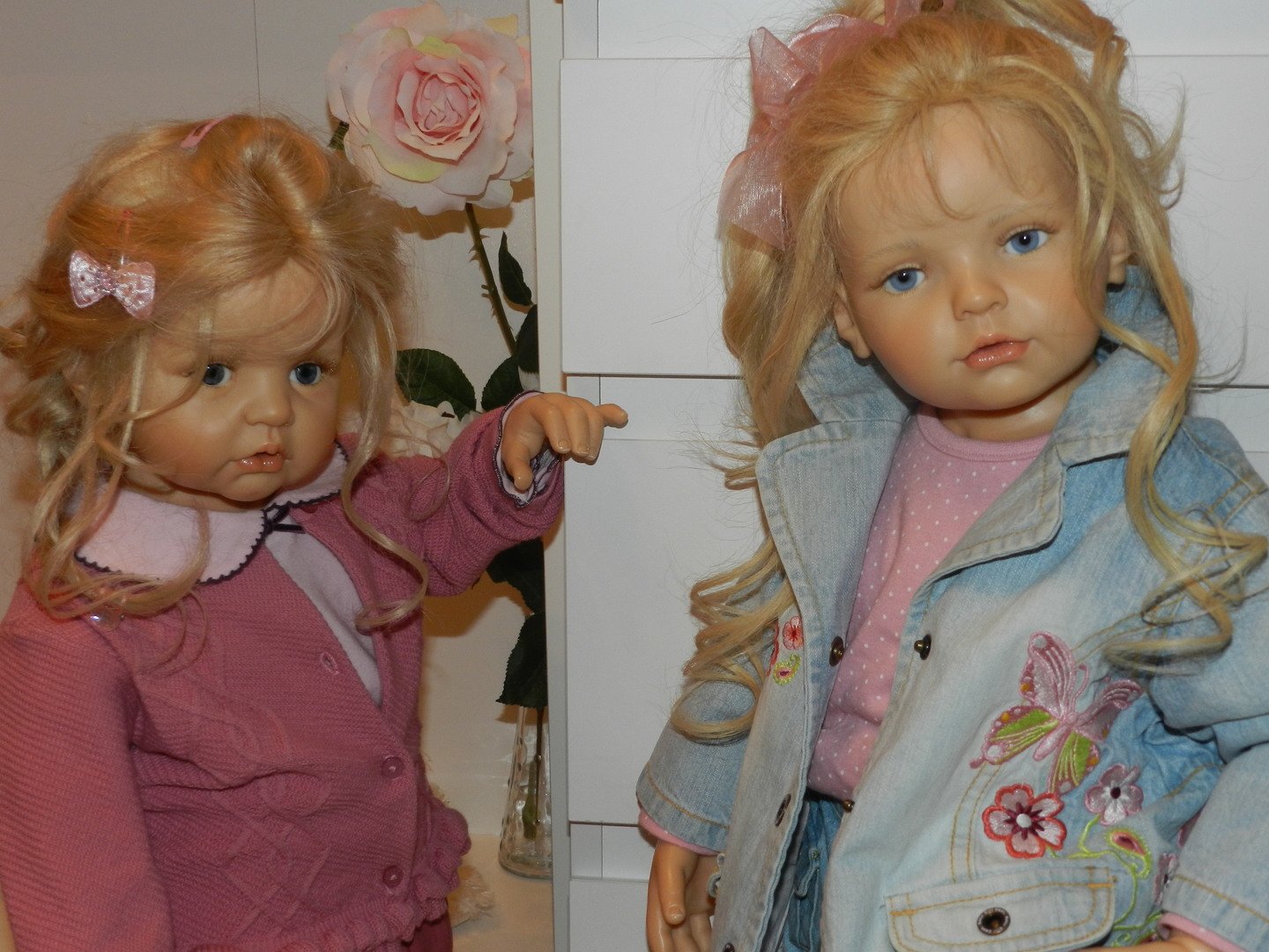Все три девочки из первого выпуска кукол Хильдегард Гюнцель из резин, коллекция 2006 года, лимитированный выпуск в 250 шт.каждая, Шпатсхен и Хенрика ростиком в 68 см, а Фине- 70 см.У всей троицы парички из натуральных волос, глазки стекло, наряды из натуральных материалов.Девочки до того хороши, что до сих пор вызывают горячий интерес к себе и желание заполучить их в коллекцию.Их промо фоточка…