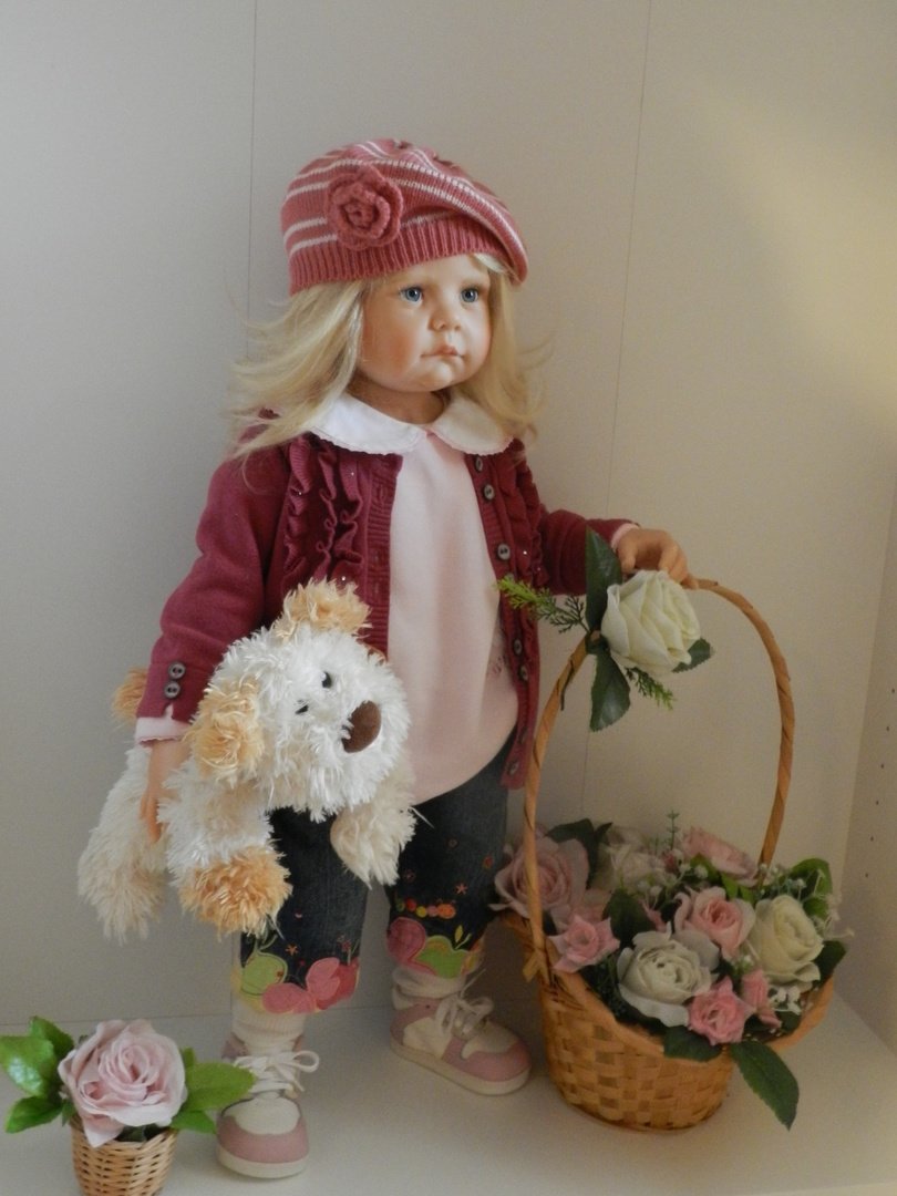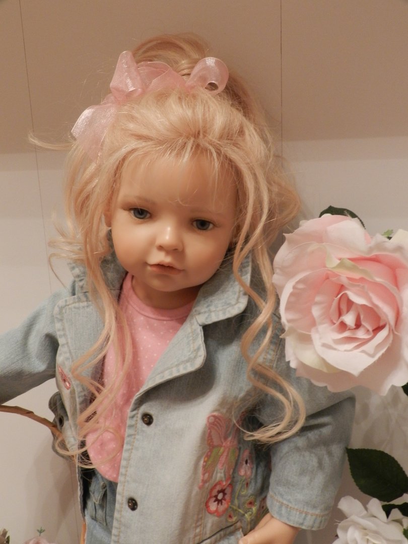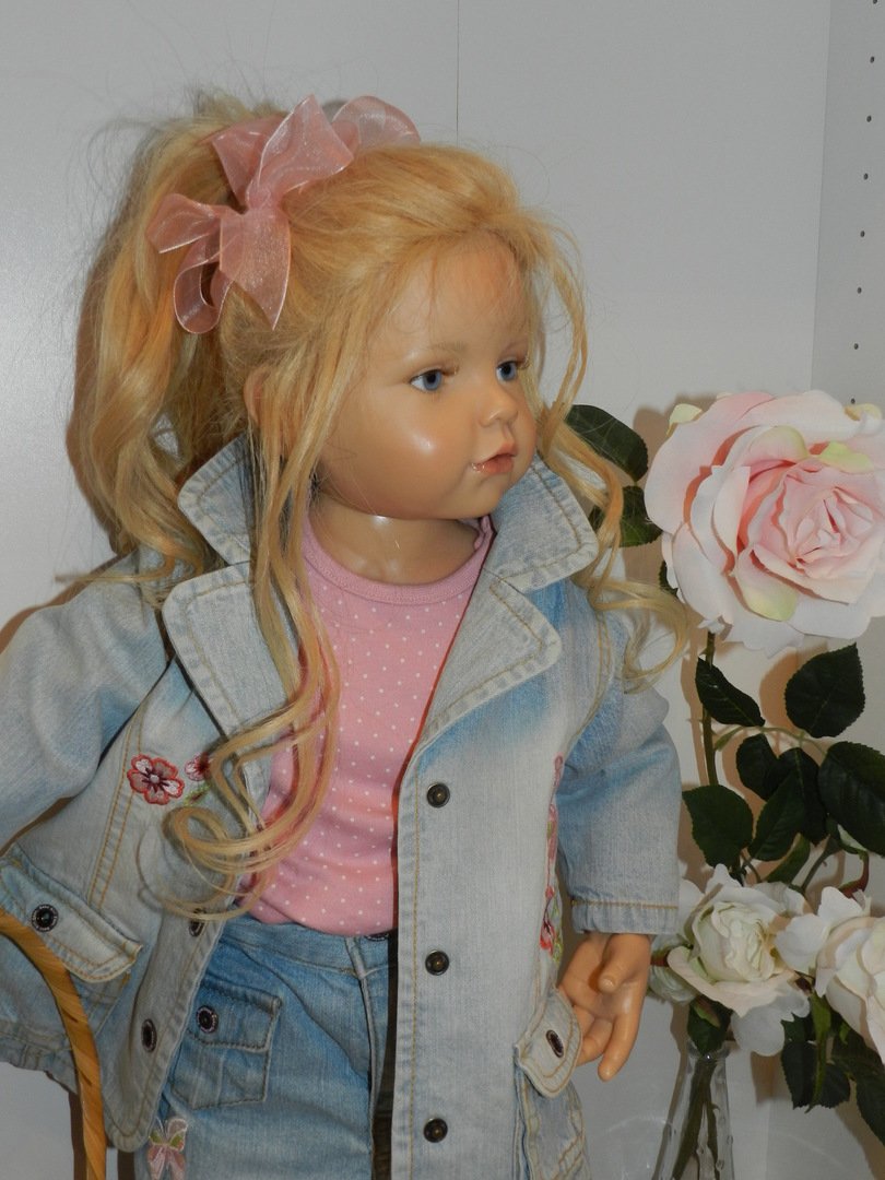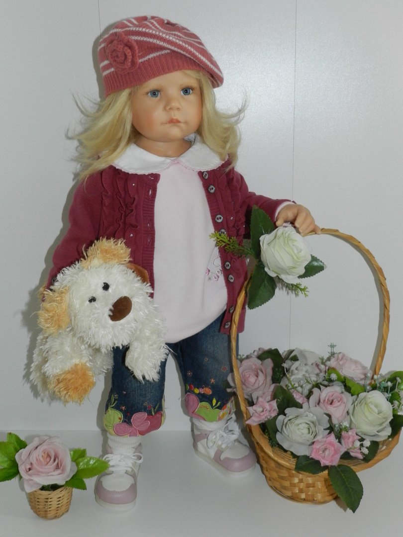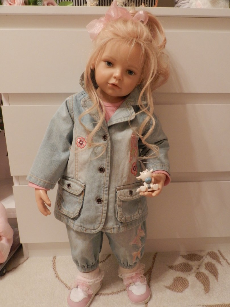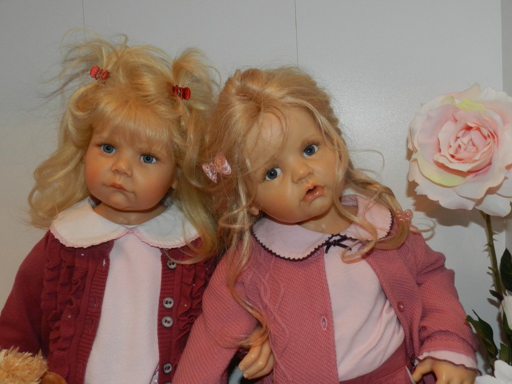 Все три девочки из первого выпуска кукол Хильдегард Гюнцель из резин, коллекция 2006 года, лимитированный выпуск в 250 шт.каждая, Шпатсхен и Хенрика ростиком в 68 см, а Фине- 70 см.У всей троицы парички из натуральных волос, глазки стекло, наряды из натуральных материалов.Девочки до того хороши, что до сих пор вызывают горячий интерес к себе и желание заполучить их в коллекцию.Их промо фоточка…